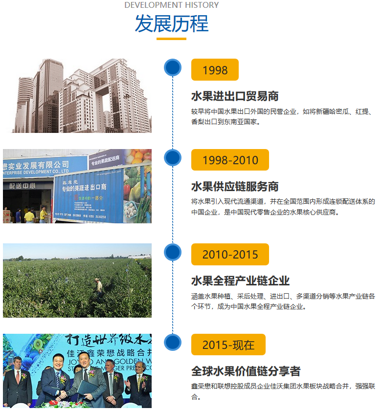 鑫荣懋集团股份有限公司成立于1998年,是一家长期聚焦于水果领域的龙头企业,是链接全球核心水果资源、提供全渠道专业服务的平台型企业。集团成立以来一直以消费者乐享水果生活、推动中国果业可持续发展为己任,践行“水果让生活更健康”的使命。业务范围涵盖水果领域四大板块——品种引进和授权种植、专业供应链服务、全渠道分销、产品开发和品牌营销。2019年鑫荣懋营收近90亿元,是农业产业化国家重点龙头企业、改革开放40周年广东省优秀企业、广东企业500强、深圳百强企业、中国女排官方供应商。