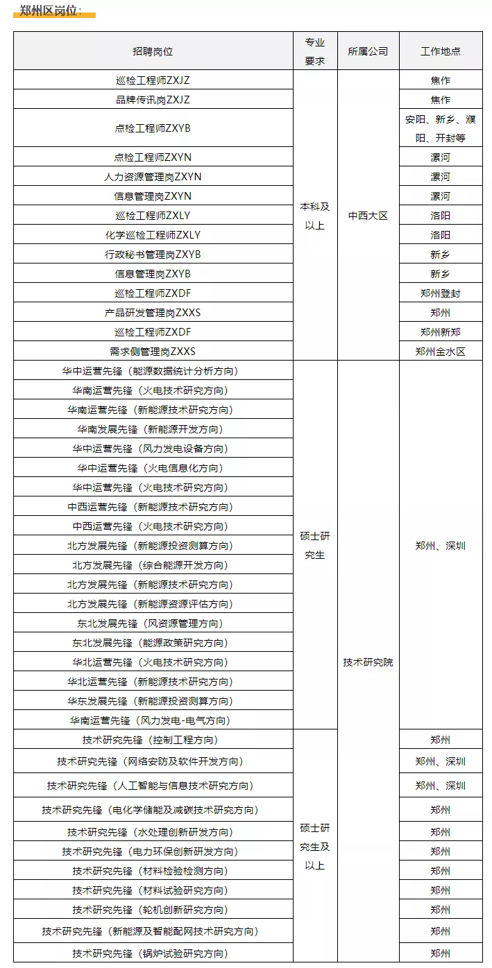 专业技术类:电气岗、风机岗、光资源管理岗、汽机岗、商务岗土建岗、安全工程岗、电化学储能及减碳技术研究岗、生产运行类集控巡检岗、运行岗