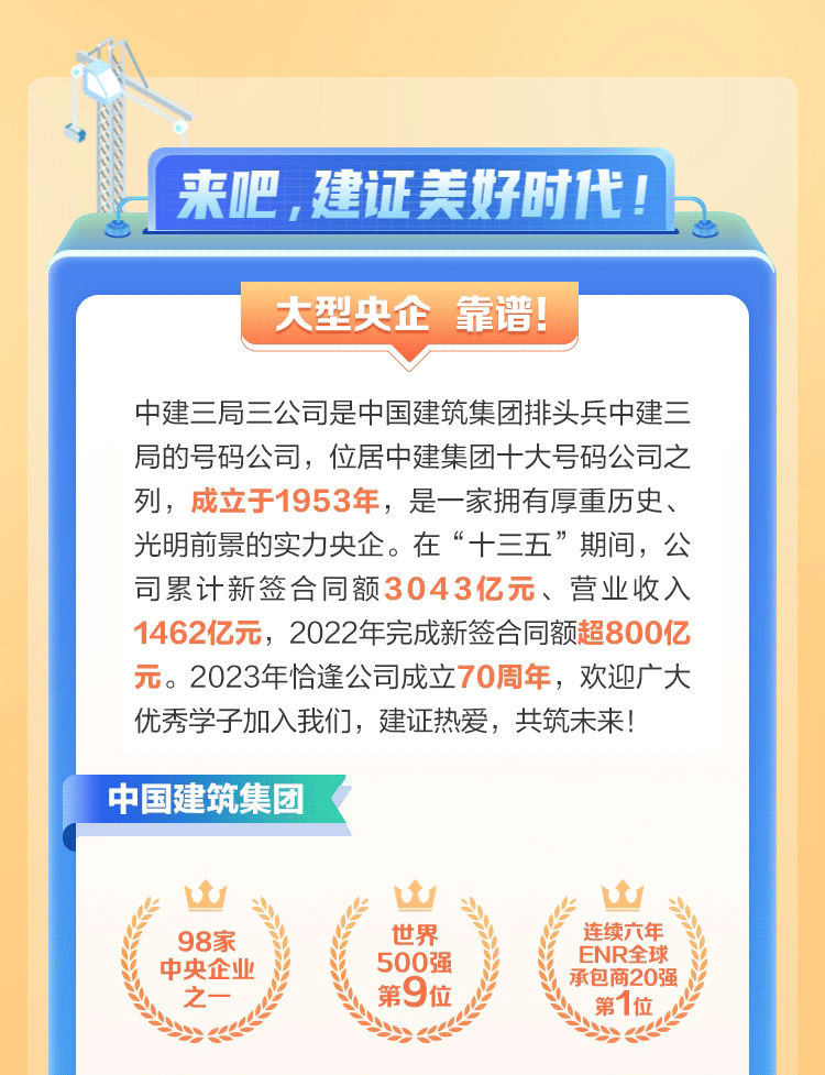 大型央企 | 中建三局三公司2023届春季校园招聘燃梦启航!