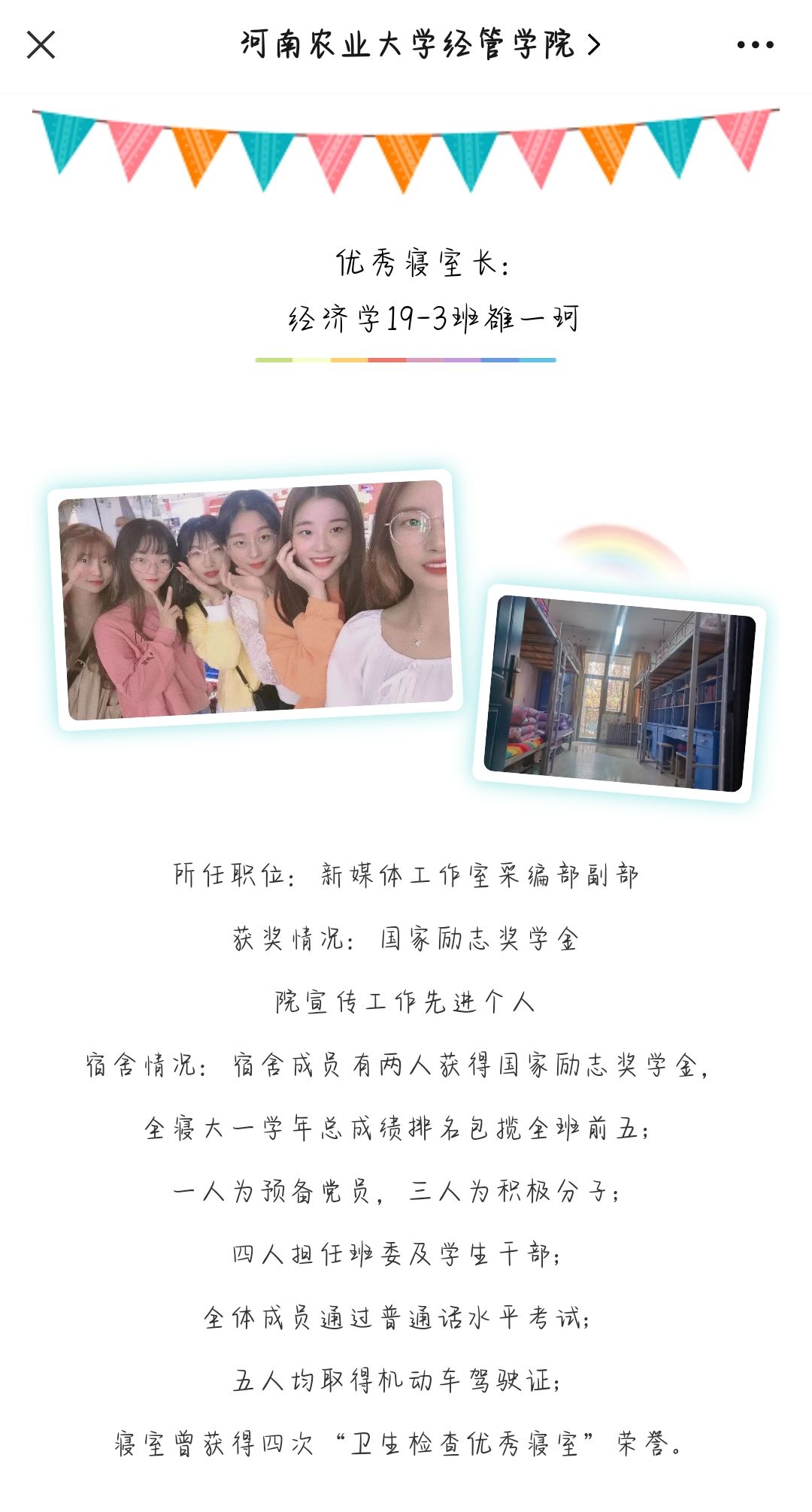 优秀寝室长评选中,她被评 为“优秀寝室长”,其所在寝室在抖阴
