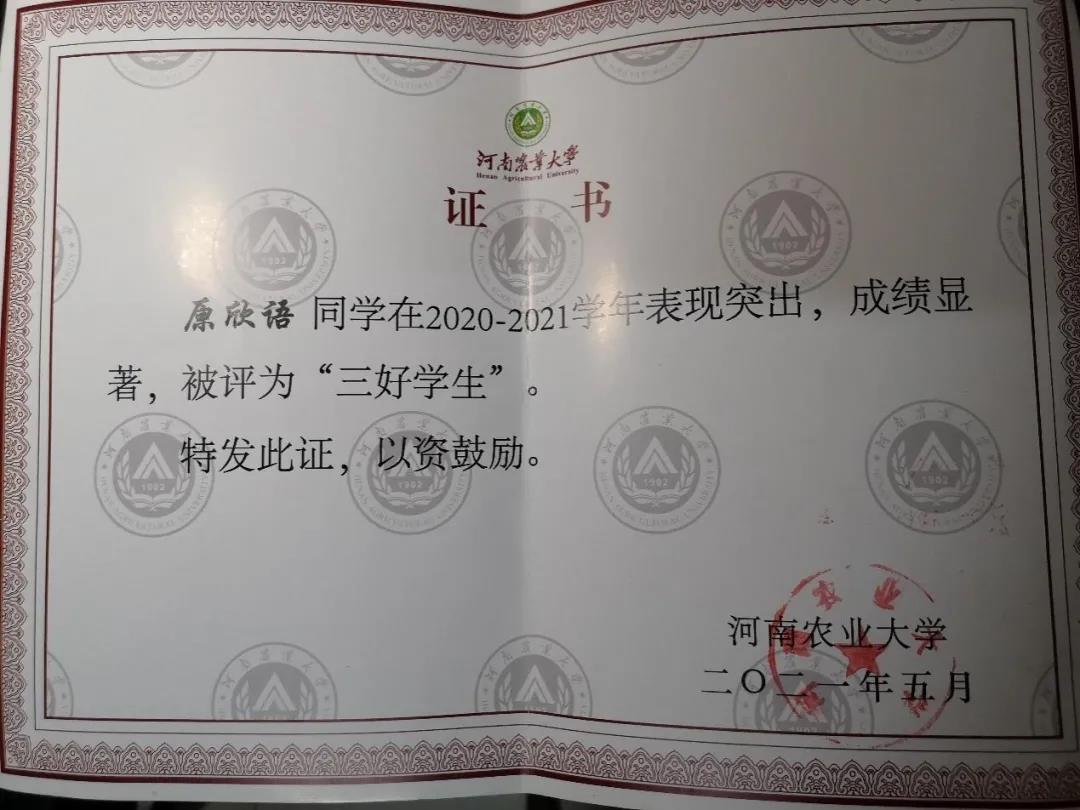 (国家奖学金获得者原欣语)