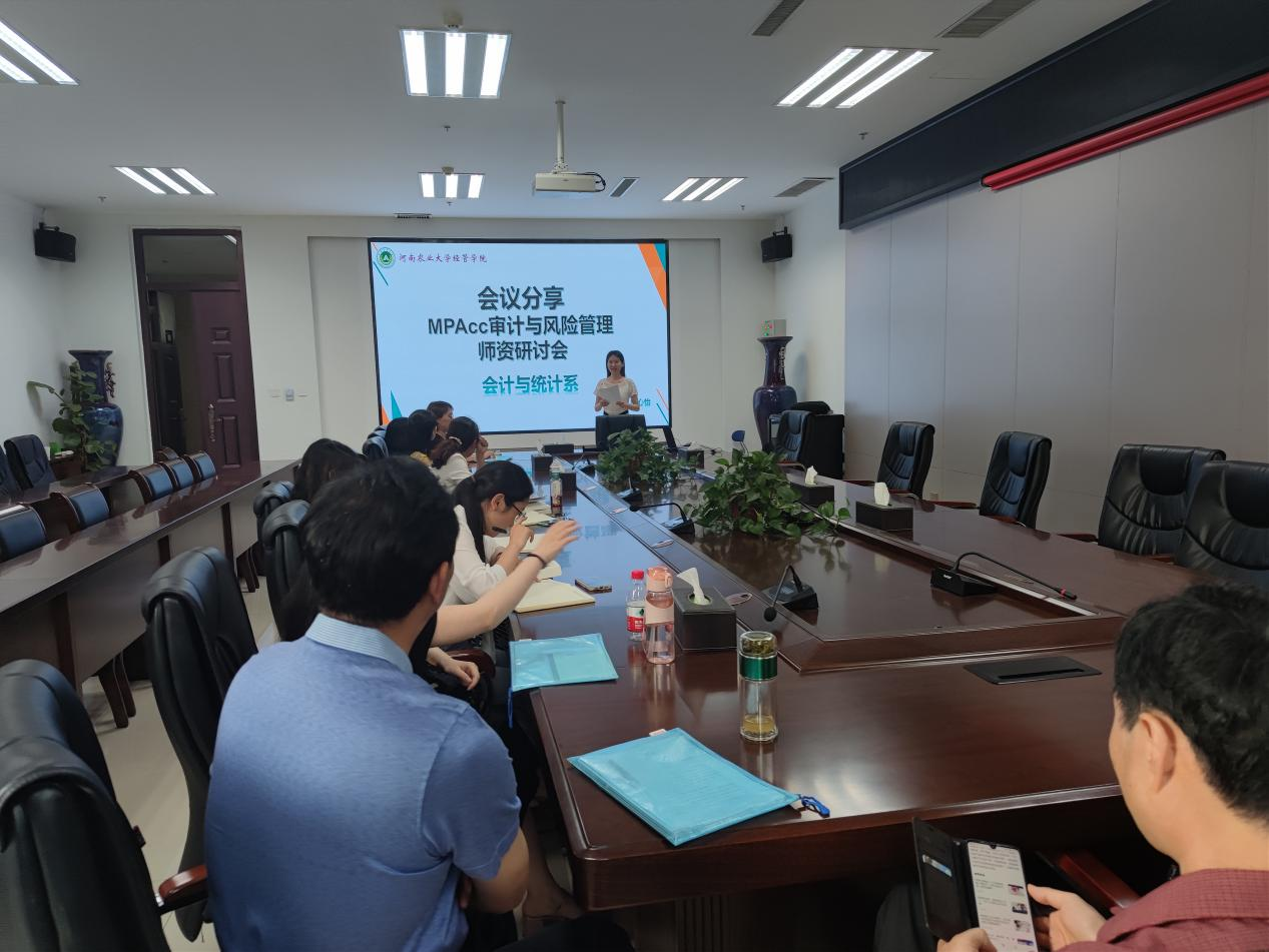 会议首先由时心怡老师做了MPAcc审计与风险管理会议分享报告。时心怡老师于2021年5月27日至28日参加了MPAcc审计与风险管理线上会议。此次会议从四个方面研讨了MPAcc审计与风险管理相关问题:一、审计理论与实务的课程教学;二、企业风险管理的困境与突破;三、审计质量控制的制度变革;四、数字化转型背景 下的审计与企业风险管理。此外,一些老师就政府审计与内部审计、大数据审计实务、风险管理与内部控制实务、审计与风险管理课程建设、数字化转型背景下的企业风险管理做了专题讲解。