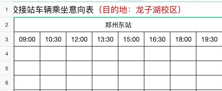 注:为促进大家顺利安全返校,学校将在郑州站、郑州东站和新郑机场设置免费接站服务,届时将有接站点。接站时间如下: