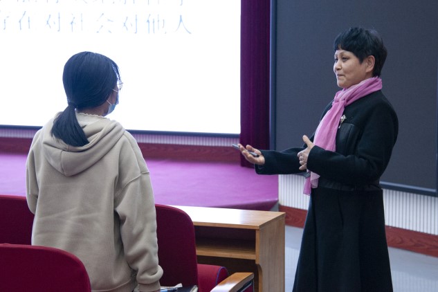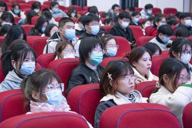 于大教室一举办“大学生心理健康与调适”讲座,本次讲座由院党委副书记方芳和院团委书记杨鑫主持,郑州师范学院心理健康教育咨询中心主任李宛青教授主讲,院团委老师到场出席,19级、20级、21级主要学生干部积极参加。