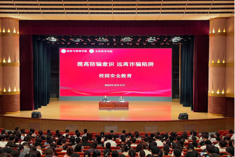 特邀金水区反虚假信息诈骗中心民警李煜伟于文化路校区大礼堂开展“提高防骗意识,远离诈骗陷阱”校园安全主题教育讲座。院团委老师袁颖、袁榕到场出席,抖阴