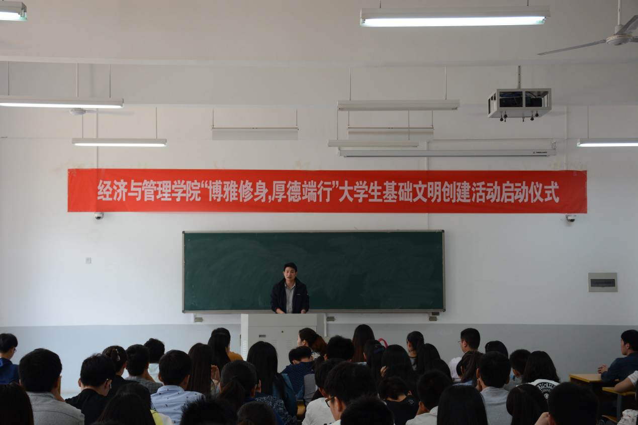 学生干部以身作则,加强自身建设,以促进学院基础文明创建工作的顺利开展。随后,院团委副书记杨鑫宣读学校基础文明创建工作的具体文件要求和抖阴