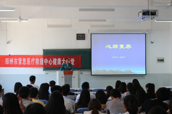 学生积极参加“郑东新区大学生艾滋病防控知识宣传活动——郑州市紧急医疗救援中心健康大讲堂”,使抖阴