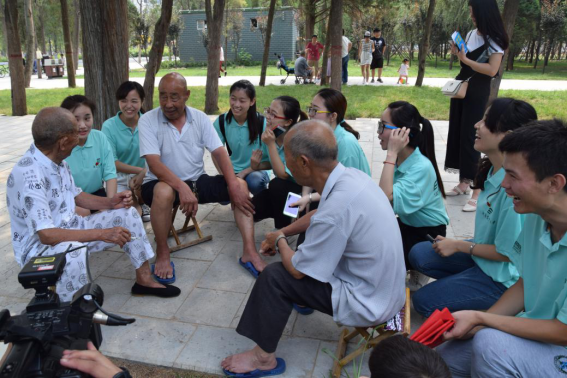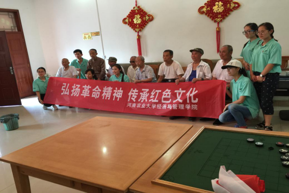 7月4日,党员们奔赴新县光荣院,在院长李先科的悉心带领下,看望109岁高龄的红军韩守道老人。在围剿中被抓,又历经磨难逃出,并被老农救下,老人的一生可谓饱经风霜。虽然已是109岁高龄,眼睛和耳朵早已不灵光,但是当看到党员们拿出鲜红的党旗时,老人依然很激动,目光烁烁,口中一直说着:“党旗,党旗!”随后,党员们与八位老战士开展座谈会。当老战士们得知队员们都是党员时,顿时竖起了大拇指,并语重心长地嘱咐党员们一定要把国家建设的更加美好。党员们身负重任,必当不负使命。