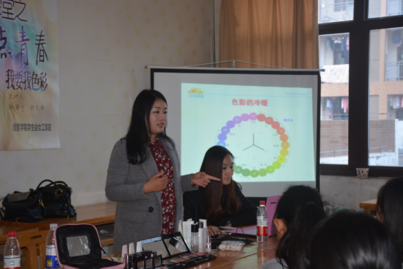 女生课堂系列活动之“妆点青春,我要我色彩”在青梅303举行。玫琳凯公司美容顾问耿李宁老师和许文洁老师作为嘉宾到场出席,抖阴