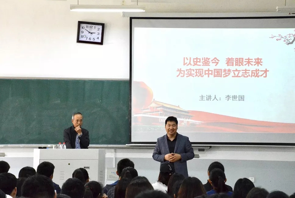 本次报告会主要包括“中华五千年的历史经验”、“中国近代历史的几个根本问题”、“新中国的光辉历史”和“为实现中国梦立志成才”四个内容。首先,李老师深入解读了中华五千年连续发展的文明史,分别从民族、经济、政治、文化四个方面引领大家重新认识了一个统一的、多民族的中国。他认为,重视历史、研究历史、借鉴历史,可以给人类带来很多了解昨天、把握今天、开创明天的智慧。接着,李老师全面分析了中国近代历史的几个根本问题,再次肯定了中国共产党在社会主义建设发展中的领导地位。宣讲过程中,老师激情互动,学生热情响应,现场气氛活跃热烈。随后,李老师紧扣习近平总书记的十九大报告对新中国成立以来的各个阶段做了深刻解读,详细汇报了改革开放40年来中国社会的发展成就。最后,李世国老师将话题回归我校,引出了对当代大学生的要求,切实强调了广大青年大学生对于建设社会主义的重要作用,并要求同学们自觉融入实现中华民族伟大复兴的中国梦的实践之中,此次报告会在热烈的掌声中落下帷幕。