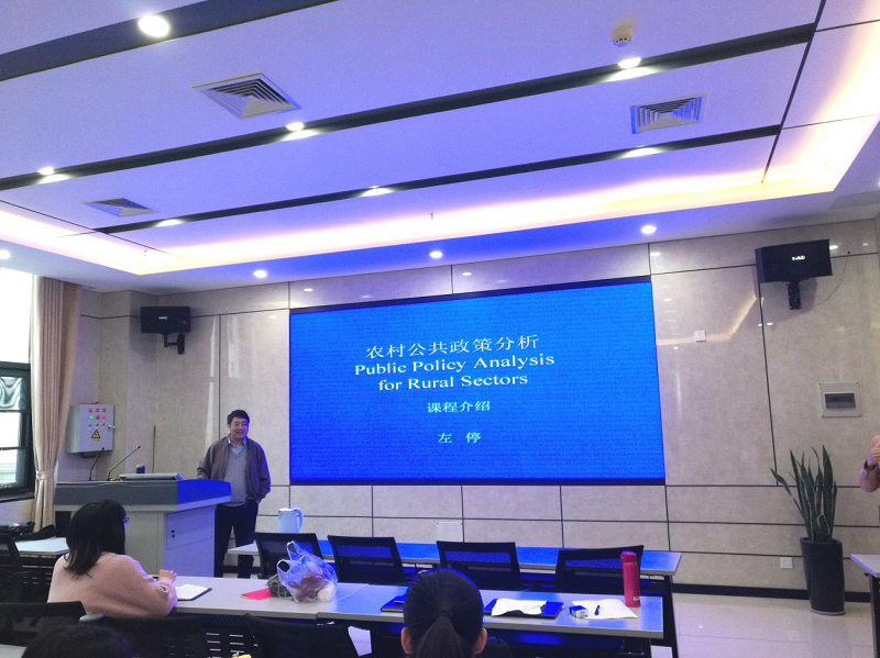 左停教授主要围绕“中国公共政策体系”、“中国公共政策”、“中国农村公共政策”,“农村公共政策分析”等专题展开讲解。左教授运用公共政策理论分析了农村发展过程中所面临的现实问题,深入剖析中国农村扶贫政策、土地政策、生态保护政策的内容以及挑战等案例。