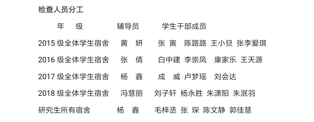 团委老师带领部分学生干部对各年级学生宿舍及研究生宿舍进行了安全隐患检查,并对排查过程中发现的安全隐患问题进行了及时提醒和汇总处理,对不符合要求的宿舍进行了耐心教育与提醒。