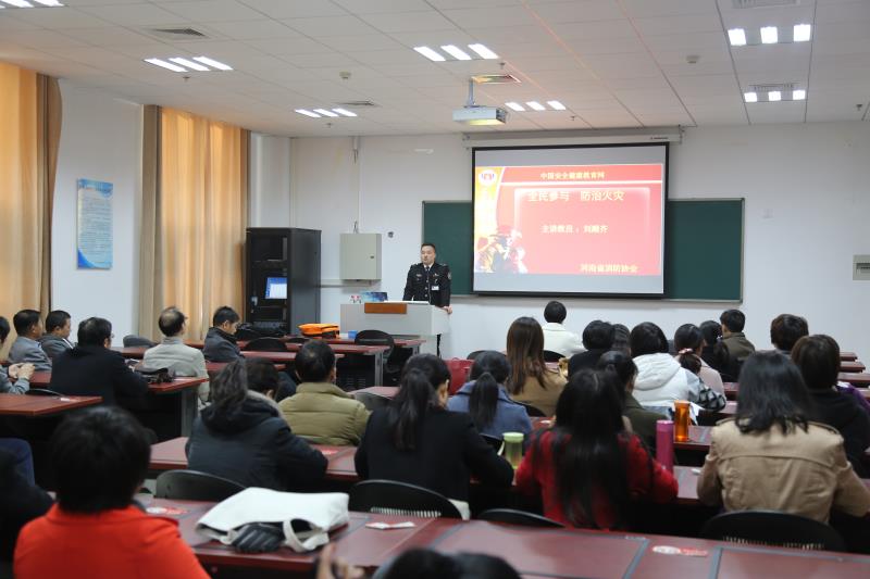 讲座上,刘顺齐结合近年来发生的重大恶性火灾案例,以视频、图片及文字的形式,形象生动地分析了提升消防安全意识的重要性,强调了掌握消防技能的必要性。会上,他还结合火灾类别向大家介绍了“灭火”、“自救”、“逃生”、“疏散”等消防应对措施,并现场演示了灭火器、逃生锤、防毒面具等消防设施使用方法。