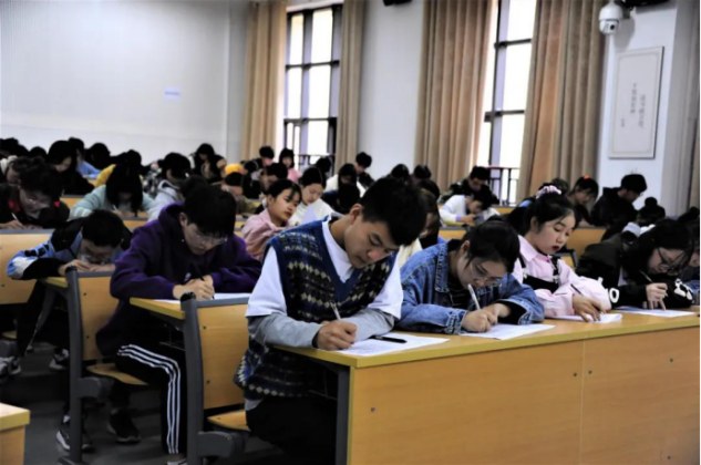 本次考试采用闭卷形式,在监考人员宣读了本次考试的考场纪律及考试规则后,新生入学资格复查考试正式开始。