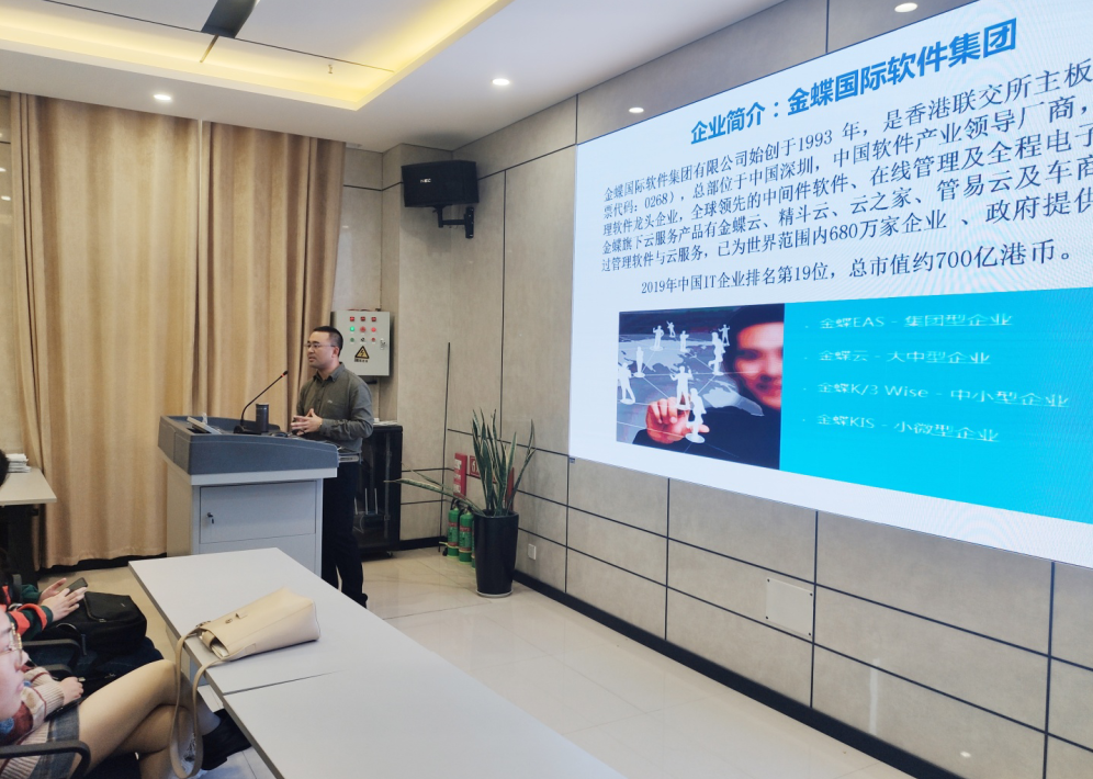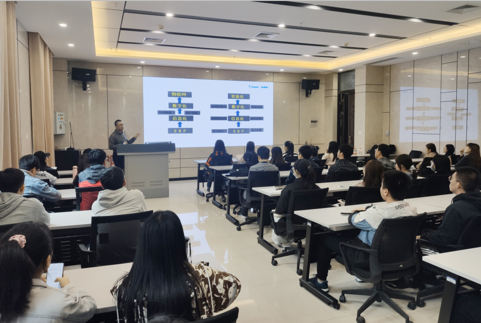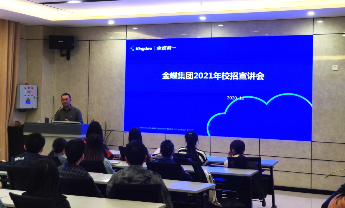 在此次宣讲会上,企业负责人刘鹏结合自己多年的从业经验向同学们详细介绍了ERP行业与相关专业的关系,为大家分析了ERP行业的发展现状,发展前景,普及了ERP知识,为即将踏入职场的大学生指出了一条良好的职业发展路径。