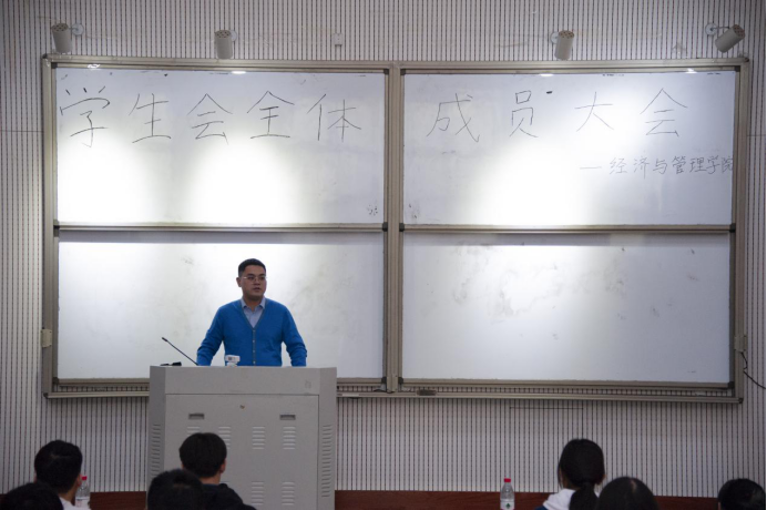在教学楼大教室5举行学生会全体成员大会。院团委副书记杨鑫出席会议,抖阴