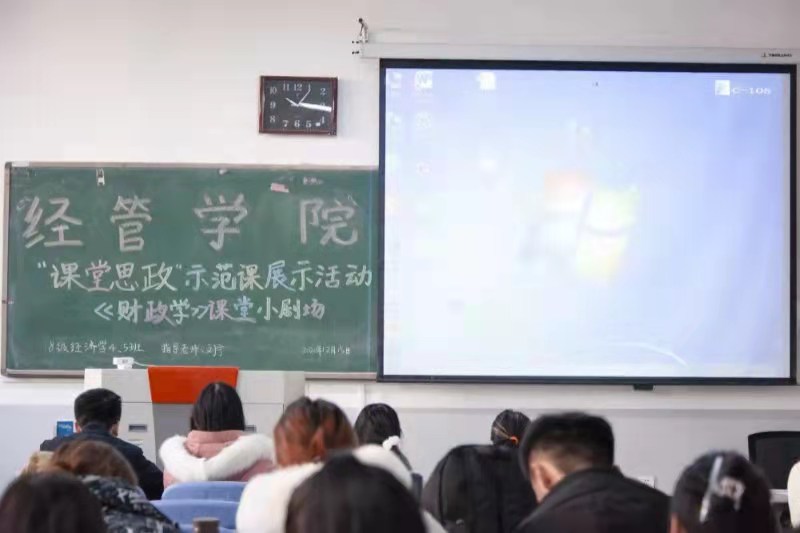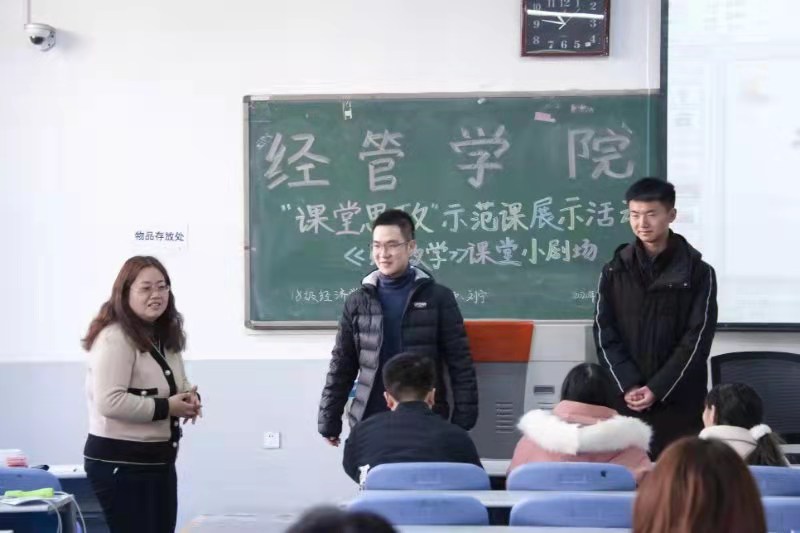课程思政示范课展示活动-《财政学》课堂小剧场正在火热进行中。18级经济学专业的同学们根据所学知识自创、自导、自演情景剧,依次上台表演了《交保风波》、《大学生阿伟的病房奇遇》、《太后的新政》等八个小剧场节目,他们以诙谐幽默的语言、生动风趣的表演,深入浅出地说明了商业保险与社会保险的区别以及保险对人身的重要意义等。期间,刘宁老师通过对财政学小剧场的点评,介绍了我国财政发展的现状及财政法发展脉络,理性地阐释了中国特色社会主义财政理论与制度,将“课堂思政”浸润到每个细节,使学生扎实掌握财政学基本概念、基本理论和基本方法。