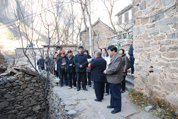 座谈结束后,大家在宋书记的带领下参观了郭亮影视村和郭亮洞等景点。郭亮影视村先后有《清凉寺的钟声》、《走出地平线》、《倒霉大叔的婚事》、《举起手来》等影视作品将这里选为外景地。在参观郭亮洞时,大家看见了当时便于清排施工石渣的形状各异的天窗,如今已经成为通风透光的观景台。党员们站在为郭亮村的经济发展与外界的沟通奠定基础的洞内,被绝壁上的隧道再次震惊,被愚公移山的壮举深深感染。