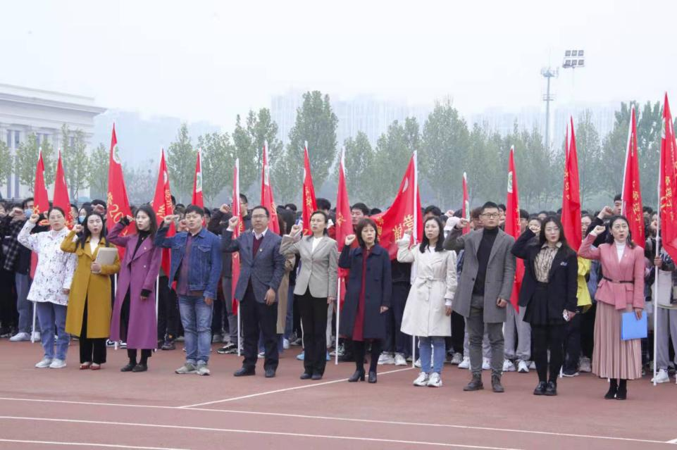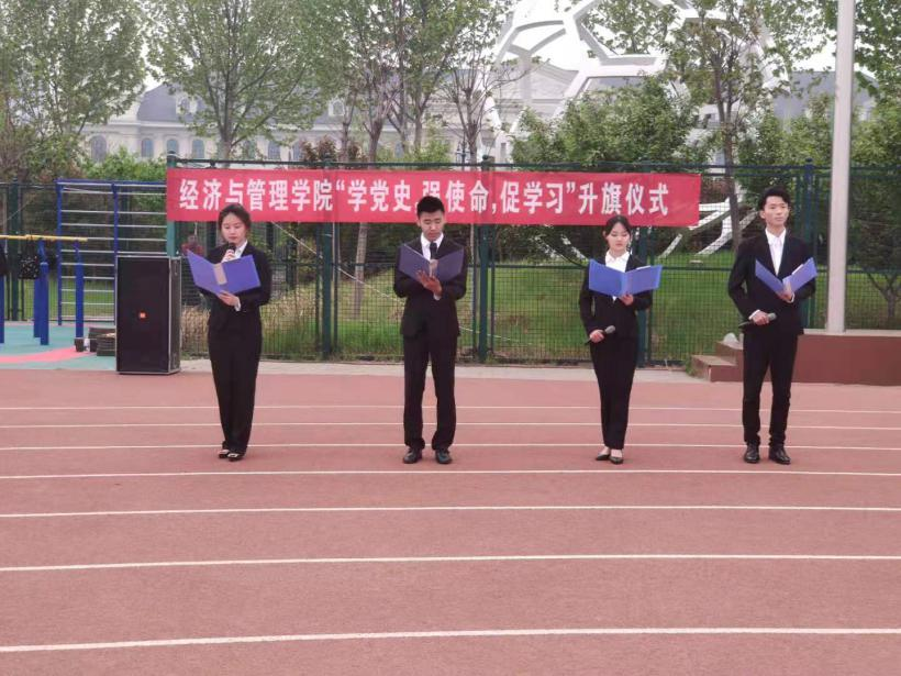 于龙子湖校区田径场举行“学党史、强使命、促学习”升国旗仪式。院党委书记牛青杨,院党委副书记方芳,副院长赵翠萍、赵友平和刘瑞峰,院团委全体老师出席了升旗仪式,抖阴