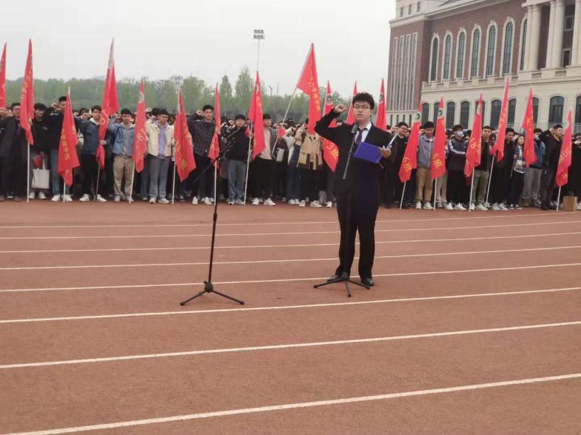 院党委书记牛青杨在国旗下发表讲话。对如何学党史、提高认识、自觉提高专业本领,提出三点希望和要求。第一:以史明志,在传承红色精神中坚定理想信念;第二:以史为鉴,旗帜鲜明反对历史虚无主义;第三:以史明今,做到知行合一,不断增强使命担当。牛书记激励广大师生以更加昂扬的姿态建功新时代,奋斗新征程,以优异的成绩迎接建党100周年。
