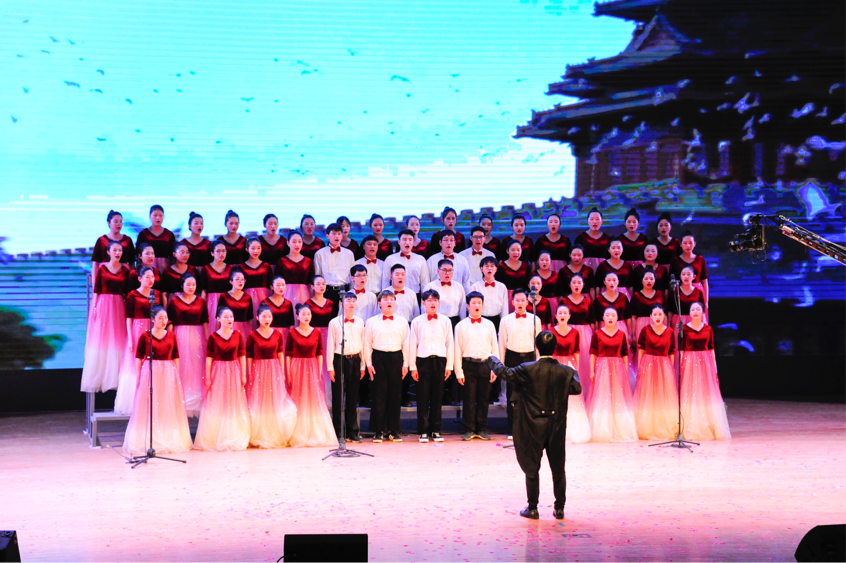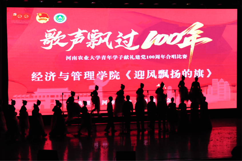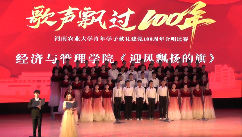 学子服饰统一、精神饱满,迈着整齐的步伐列好队伍。伴随着音乐响起,舞蹈演员翩翩起舞,指挥手势准确而富有激情,同学们歌声洪亮且饱含情感,一句句铿锵有力的歌词诉说着对祖国的热爱。慷慨昂扬的歌声不仅催人奋进,更表达出了同学们对党对祖国的一片赤诚之心。经管学子以歌抒怀、以舞明志,歌颂党、歌唱祖国,用歌声诠释时代精神,以舞蹈再现革命精神,用红色精神成就完美舞台,赢得了全场热烈的掌声。