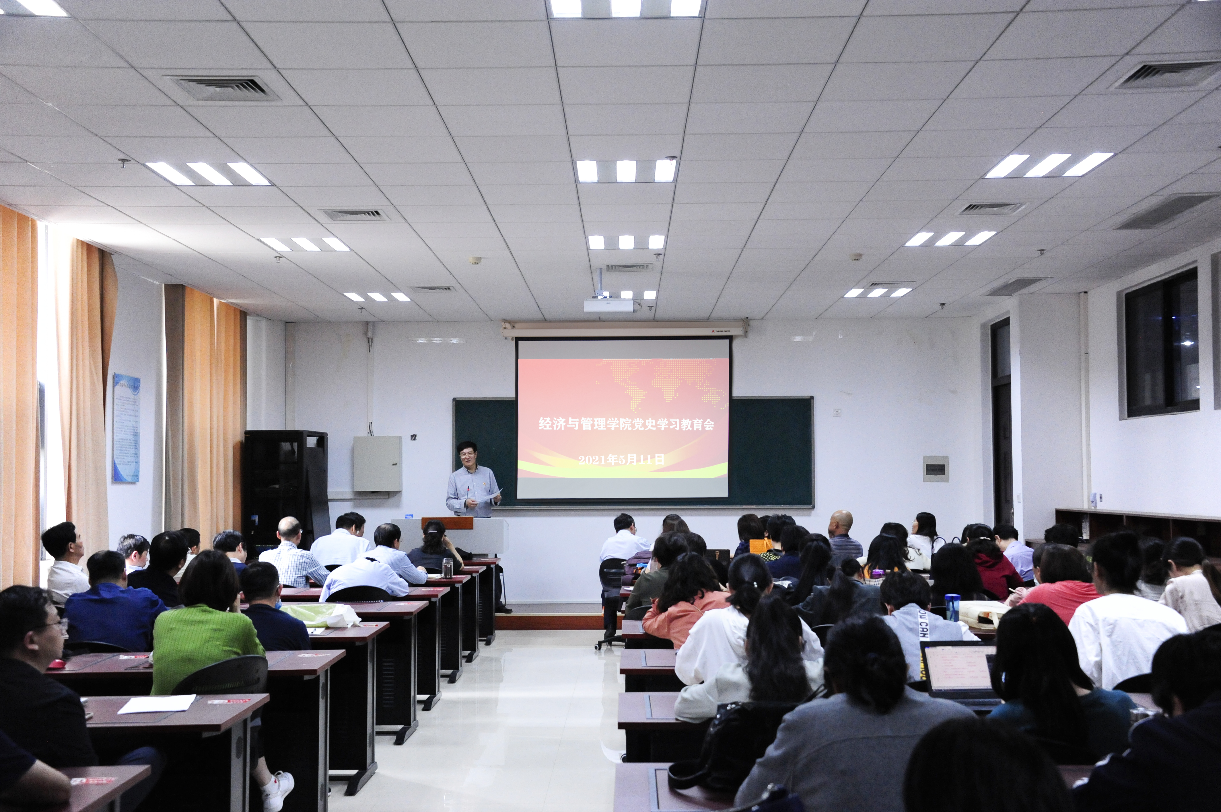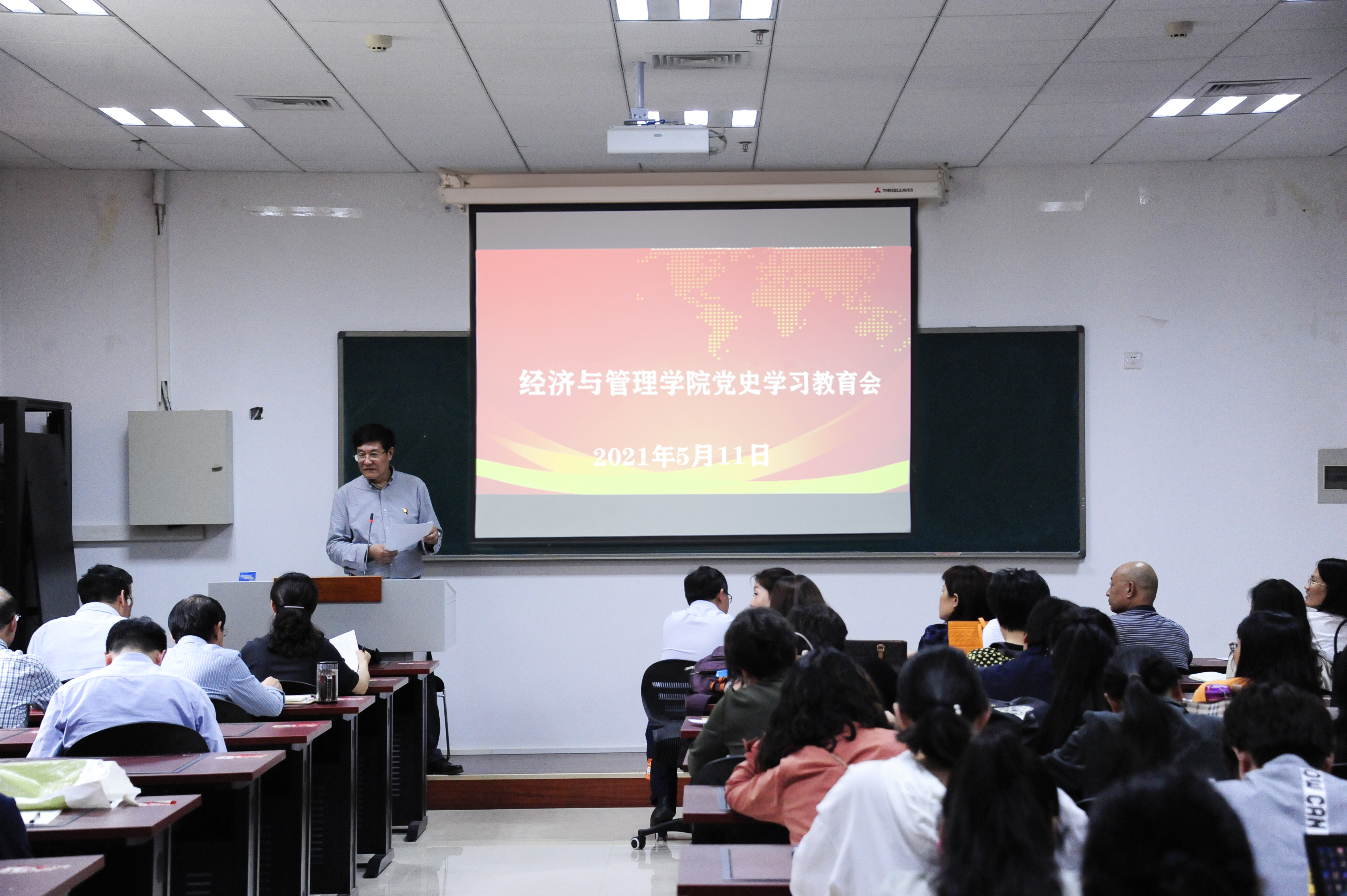 在繁塔楼B208会议室组织全体教职工开展党史学习理论会。