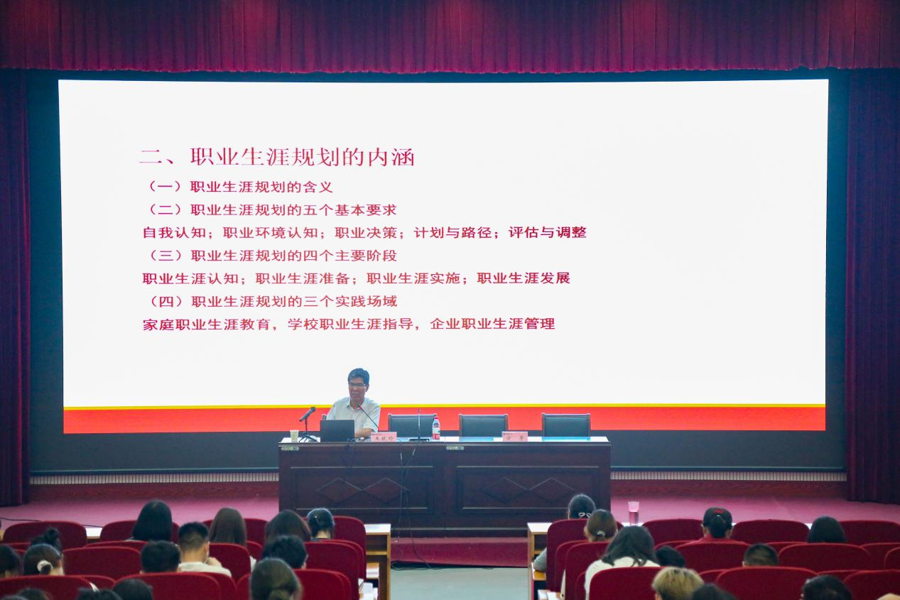 关于举办2021年大学生职业生涯规划大赛的通知》并强调了对大学生开展职业生涯规划和就业指导的重要性,他希望同学们能够瞄准自己未来的理想,有计划的完成既定的目标。院党委副书记方芳宣布本次大学生职业生涯规划大赛正式启动,她期望广大师生共同努力,真正让每一位学子有理想,有规划,有执行,度过充实的大学生活。随后郑州大学教育学院王献玲教授作了《职业生涯规划理论内涵和实践反思》主题报告。