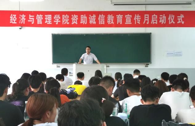 于教学楼D106举办资助诚信教育宣传月启动仪式。本次活动由院团委书记杨鑫主持,院团委老师李月、余月圆、张桂玲出席,18、19、20级班长支书积极到场参加。