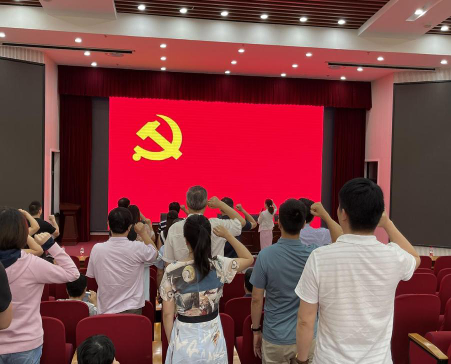 会后,在院党委副书记方芳的带领下,全体教师党员重温入党誓词:“我志愿加入中国共产党,拥护党的纲领,遵守党的章程,履行党员义务,执行党的决定,严守党的纪律,保守党的秘密,对党忠诚,积极工作,为共产主义奋斗终身,随时准备为党和人民牺牲一切,永不叛党。”大家右手握拳、挺胸抬头、目光坚毅、声声铿锵。