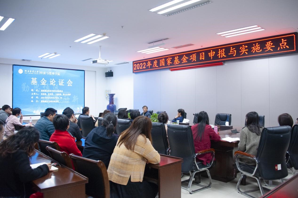 为进一步做好2022年国家基金项目申报工作,提升学院基金项目申报水平,10月26日,抖阴 于教学楼A215举办2022年度基金论证会。华中农业大学博士生导师、二级教授张俊飚主讲,院长马恒运、副院长赵翠萍出席本次会议,学院部分教师、博士生到场参加。