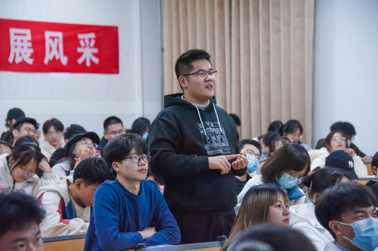活动伊始,主持人宣读此次竞赛的规则及注意事项,大赛由个人必答题、一轮抢答题、集体必答题、二轮抢答题、风险题、PPT演讲六个部分组成,并设置一等奖一名,二等奖三名、三等奖五名。答题阶段,选手们沉着冷静仔细斟酌,面对题目认真作答。抢答阶段选手们踊跃举手积极作答,神采飞扬气氛高涨,将整场赛事烘托至高潮。集体答题环节充分考验了小组内各成员的分工协作与团队合作能力,在有限的时间内进行思维的碰撞、凝练和升华。风险题环节各小组从自身实际情况与赛场形势出发,遇到胸有成竹的题目时大胆尝试放手一搏,遇到没有把握的题目时则静观其变稳中求进。在PPT展示部分,各小组派出代表上台演讲,阐述了组内成员关于本次竞赛的认知态度和学习成果,展示了抖阴
