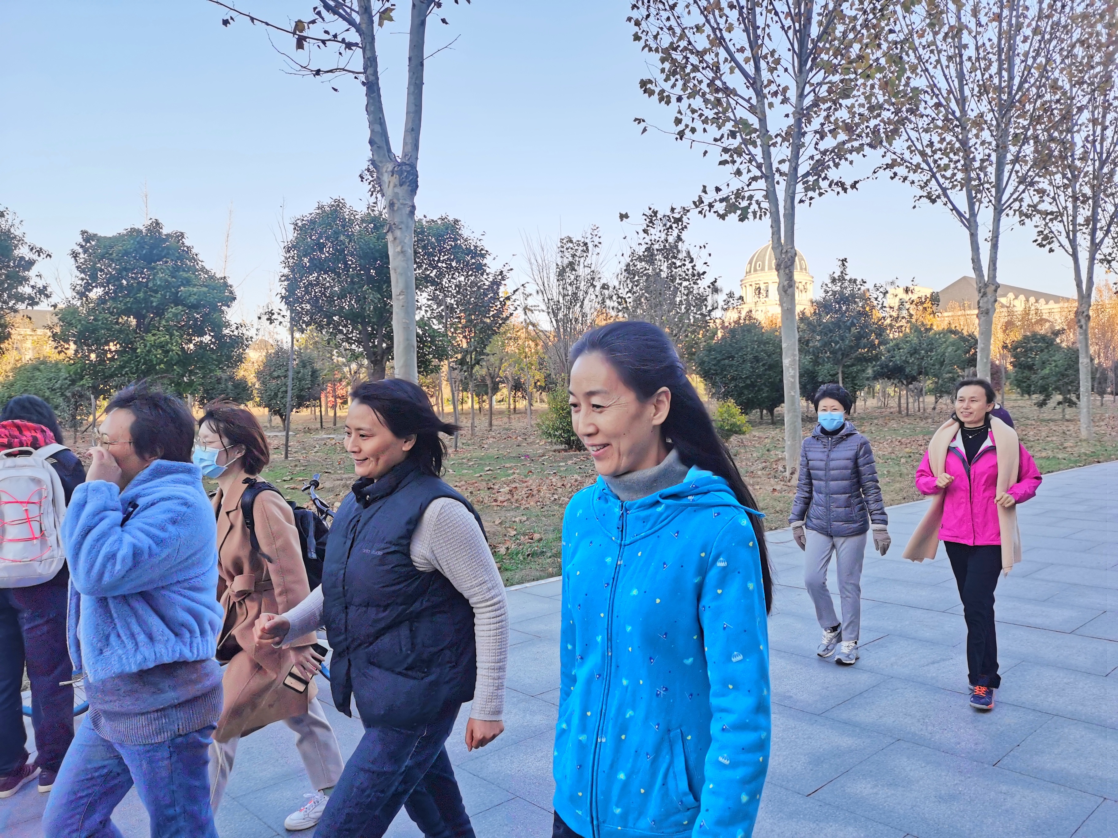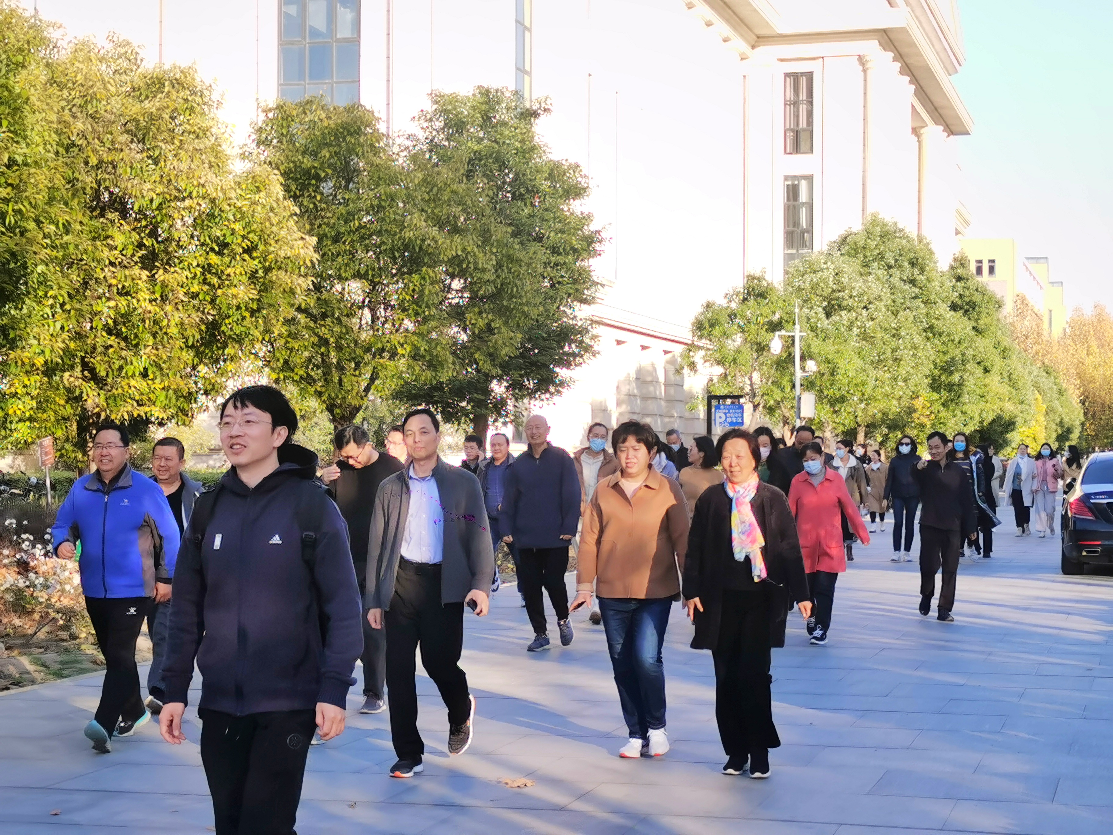 寒风清凉,却难抵老师们的参赛热情。活动开始前,参赛教职工在教学楼A座南门前集合,提前为健步走比赛做热身运动。以教学楼A座南门为起点,老师们围绕龙子湖校区主干道进行健步走。一路上,老师们热情高涨,步伐稳健,互相帮助,共同前进,充分体现了“友谊第一,比赛第二”的体育精神。比赛过程中,老师们结伴而行,呼吸清新空气,欣赏沿途美景。同时,老师们纷纷表示,经过此次活动,不仅能愉悦心情、锻炼身体,还增进了彼此间的友 谊,增强了集体凝聚力和向心力。