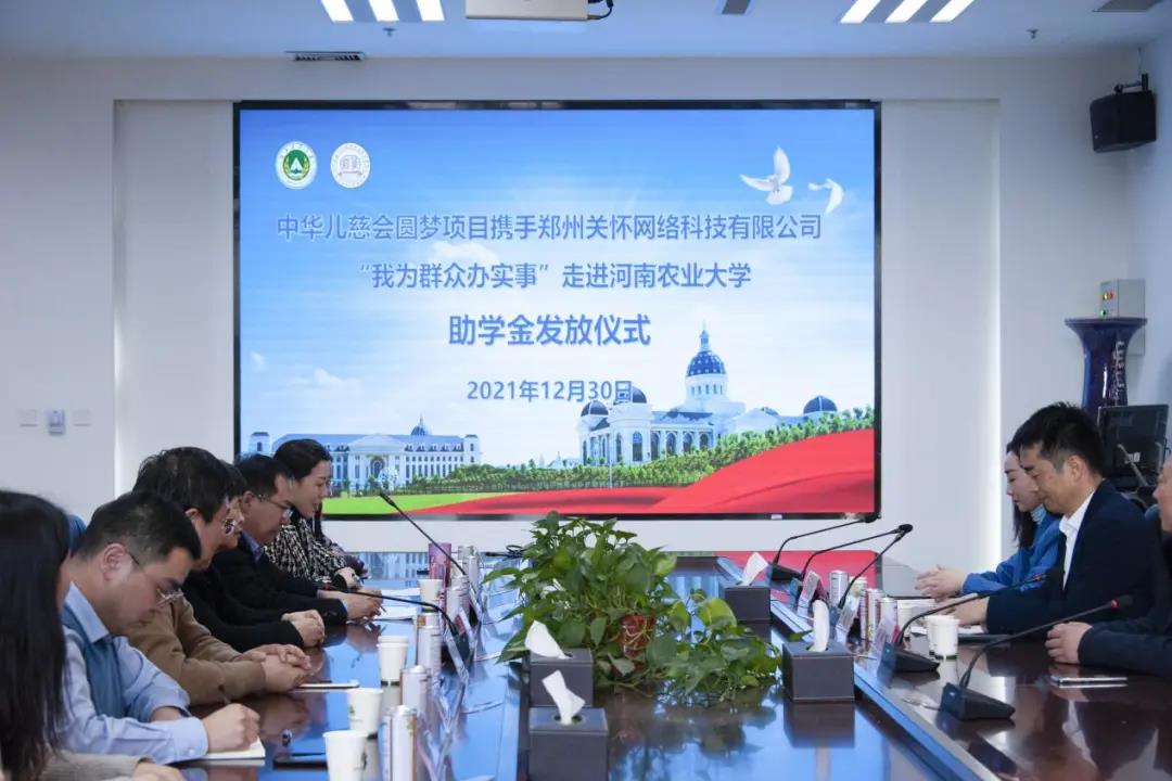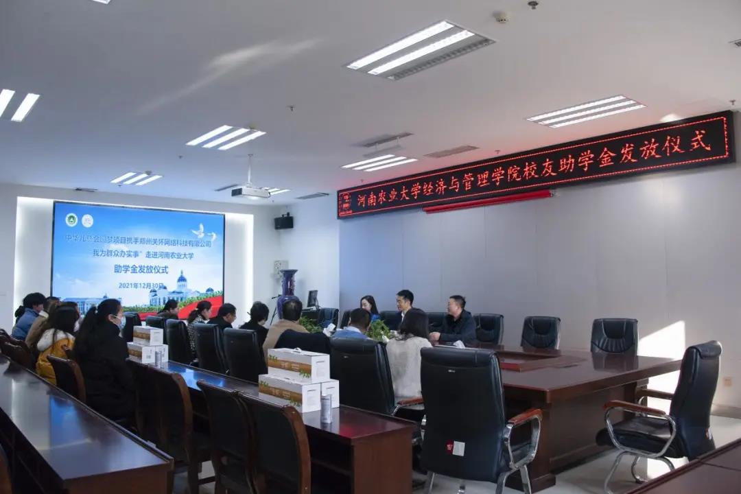 助学金发放仪式在教学楼A215顺利举行。郑州关怀网络科技有限公司董事长尹朝林、联合创始人刘中杰、董事长助理王曼出席。抖阴