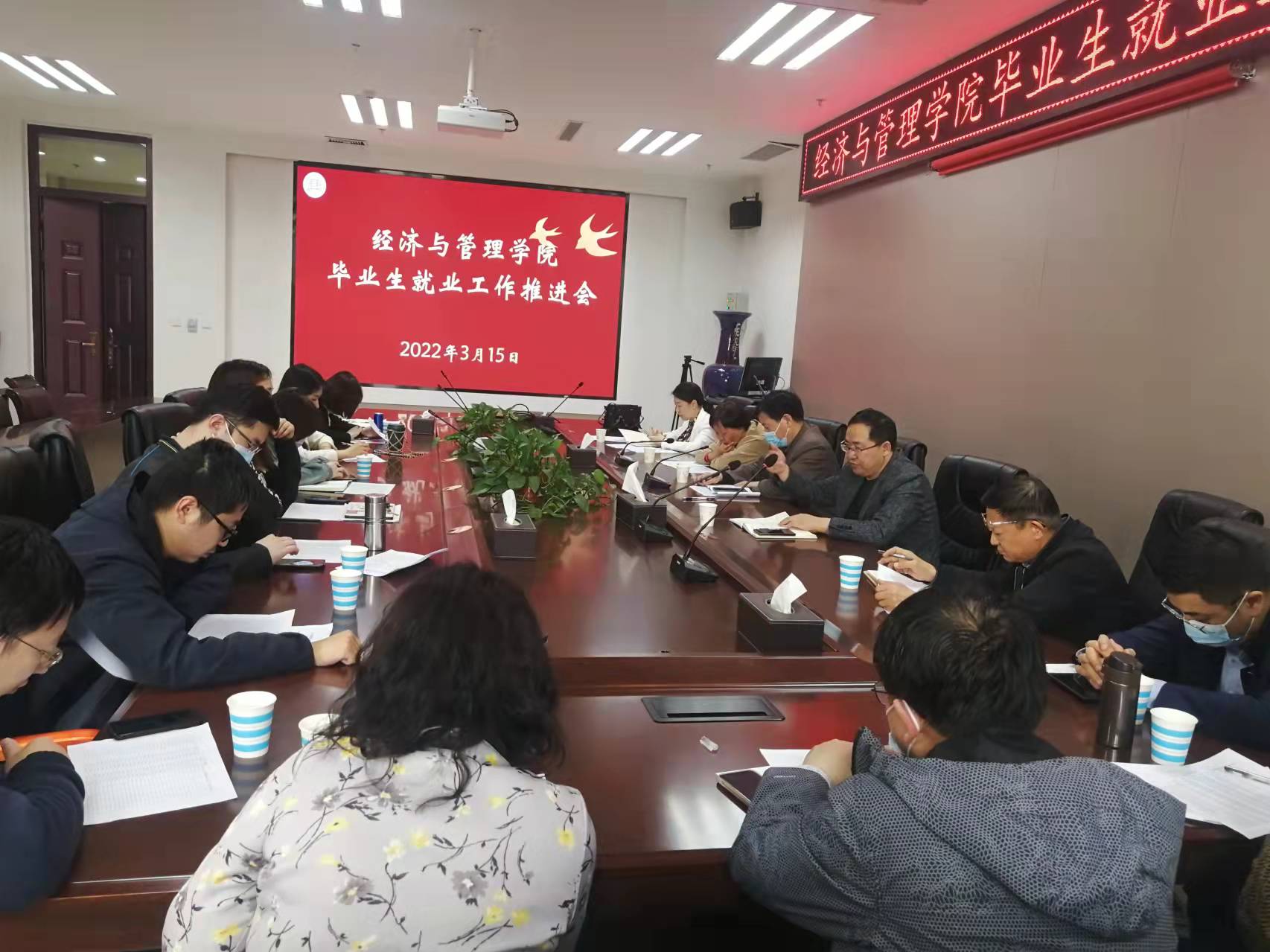 于教学楼A215召开2022届毕业生就业工作推进会。院党委书记牛青杨、党委副书记方芳、团委书记杨鑫、毕业班辅导员冯慧丽及全体毕业班班主任参加了此次会议。会议由方芳主持。