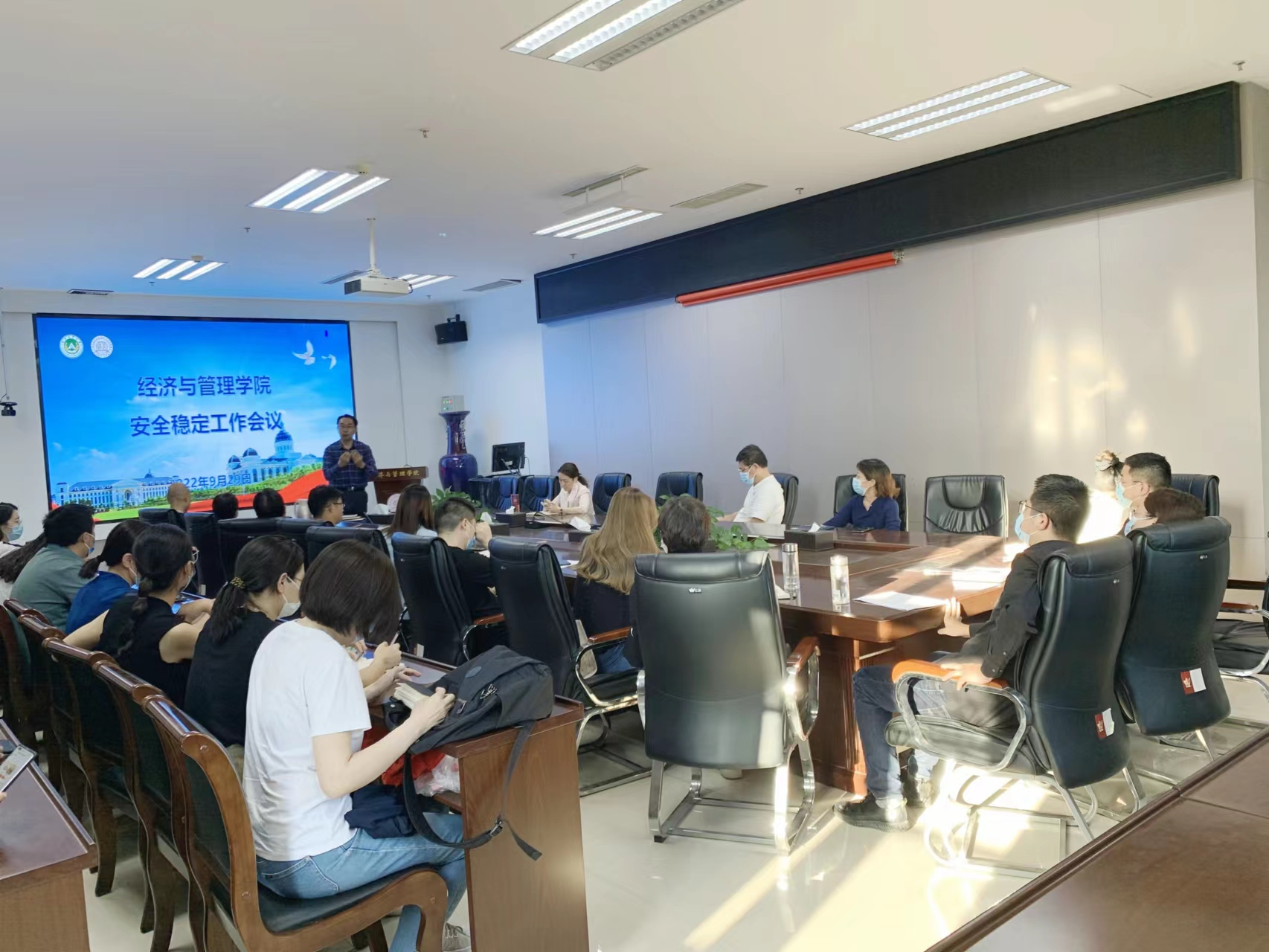 王宏立传达了学校安全稳定工作会议精神,分析了当前国家安全稳定和疫情防控形势,强调安全工作事关学院稳定、发展及师生健康。就进一步做好学院安全稳定工作提出三点要求:一要提高政治站位,高度重视安全稳定及疫情防控工作。从根本上提高思想认识,细化工作措施,确保落实成效。二要压实工作责任,明确任务,全面做好相关工作。充分发挥学院安全稳定领导小组、系主任、班主任、辅导员等岗位职能作用,确保任务到人、责任到人。三要坚持守好底线,梳理风险点,切实筑牢安全防线。制定应急预案,在现有工作方案基础上织密安全稳定和疫情防控体系,做到堵漏洞、补短板,抓实抓细抓好各项工作举措,以实际行动迎接党的二十大胜利召开。
