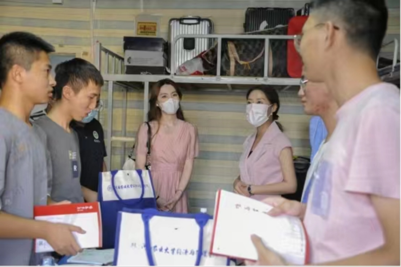 “现在正值党的二十大胜利召开之际,我身为一名中国共产党员就应当冲锋在前,这也是我作为一名老师的责任所在,我要保护好这360名同学!”袁老师目光坚定地说,希望自己也能成为学生的榜样,为他们大学生活树立一个正确的风向标。