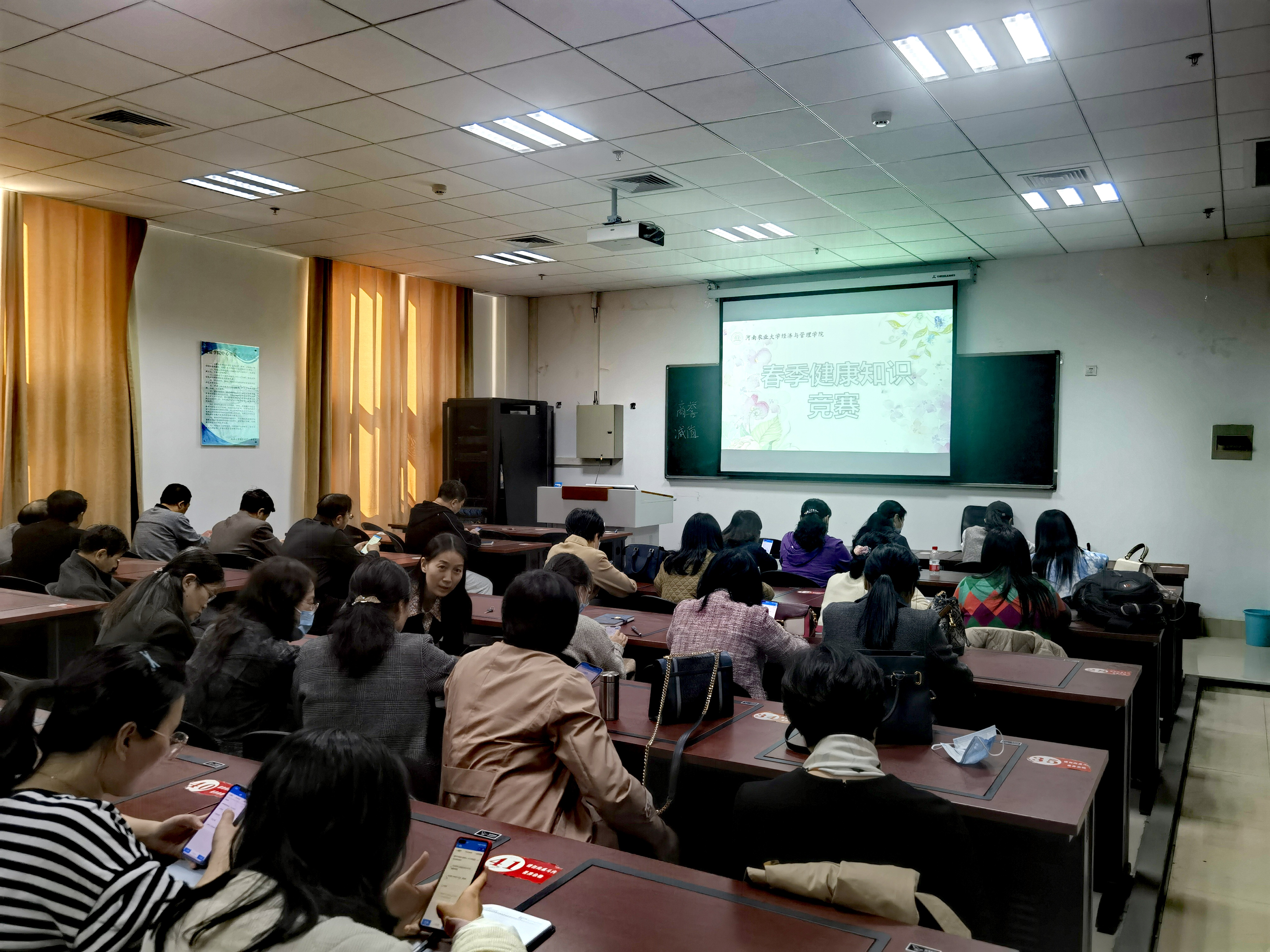 为进一步促进教职工健康知识的学习,提高教职工健康保健意识,倡导健康的生活方式与行为,3月7日,抖阴 在繁塔楼B208举办“春季健康知识竞赛”,学院教师参加活动。