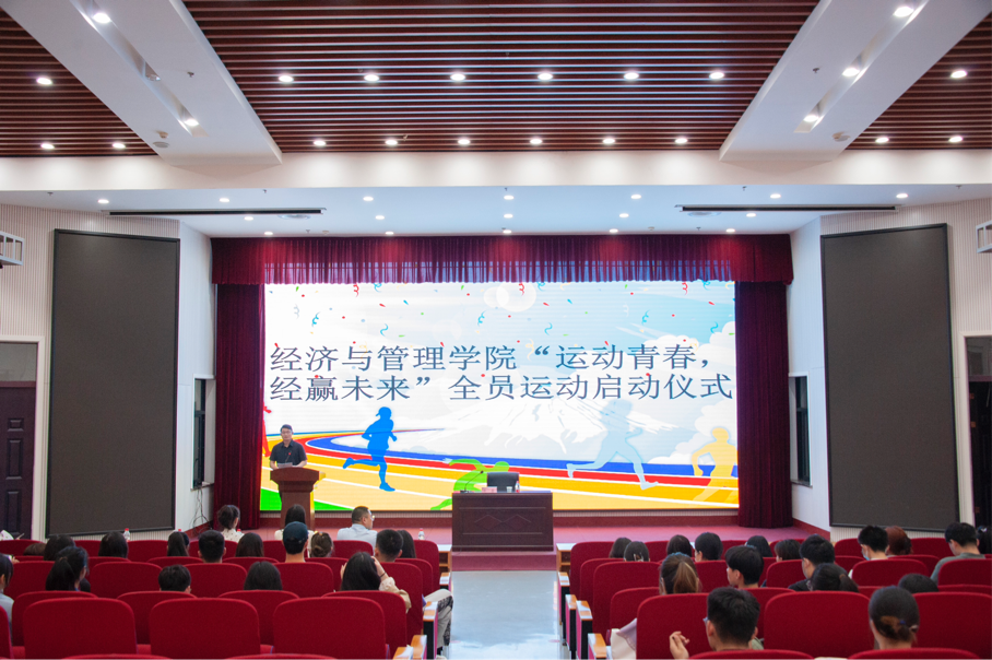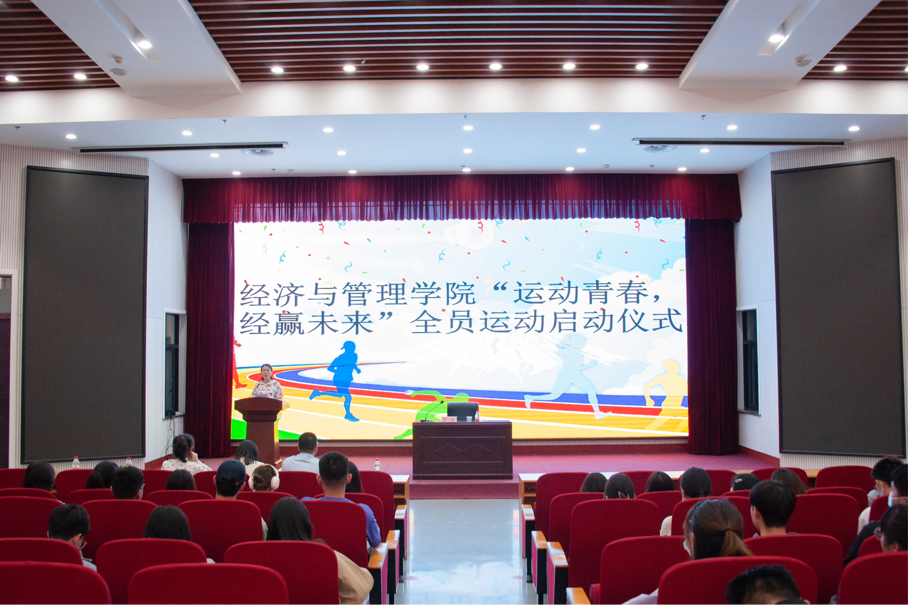 在龙子湖校区大教室一举行“运动青春,经赢未来”全员运动启动仪式。院党委副书记方芳,团委书记杨鑫,团委副书记李月、余月圆,团委老师张桂玲、袁颖出席,抖阴