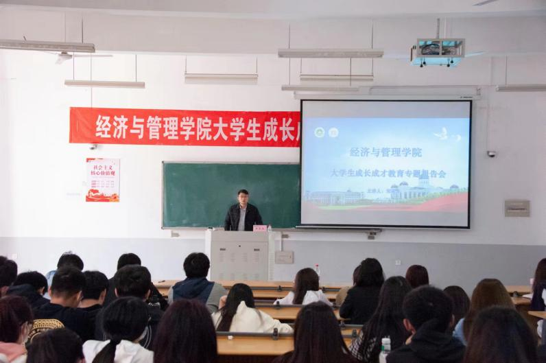 于教学楼D106举办“大学生成长成才”教育主题报告会。此次报告会特邀宋家永书记主讲,院团委副书记余月圆老师出席并主持会议,抖阴