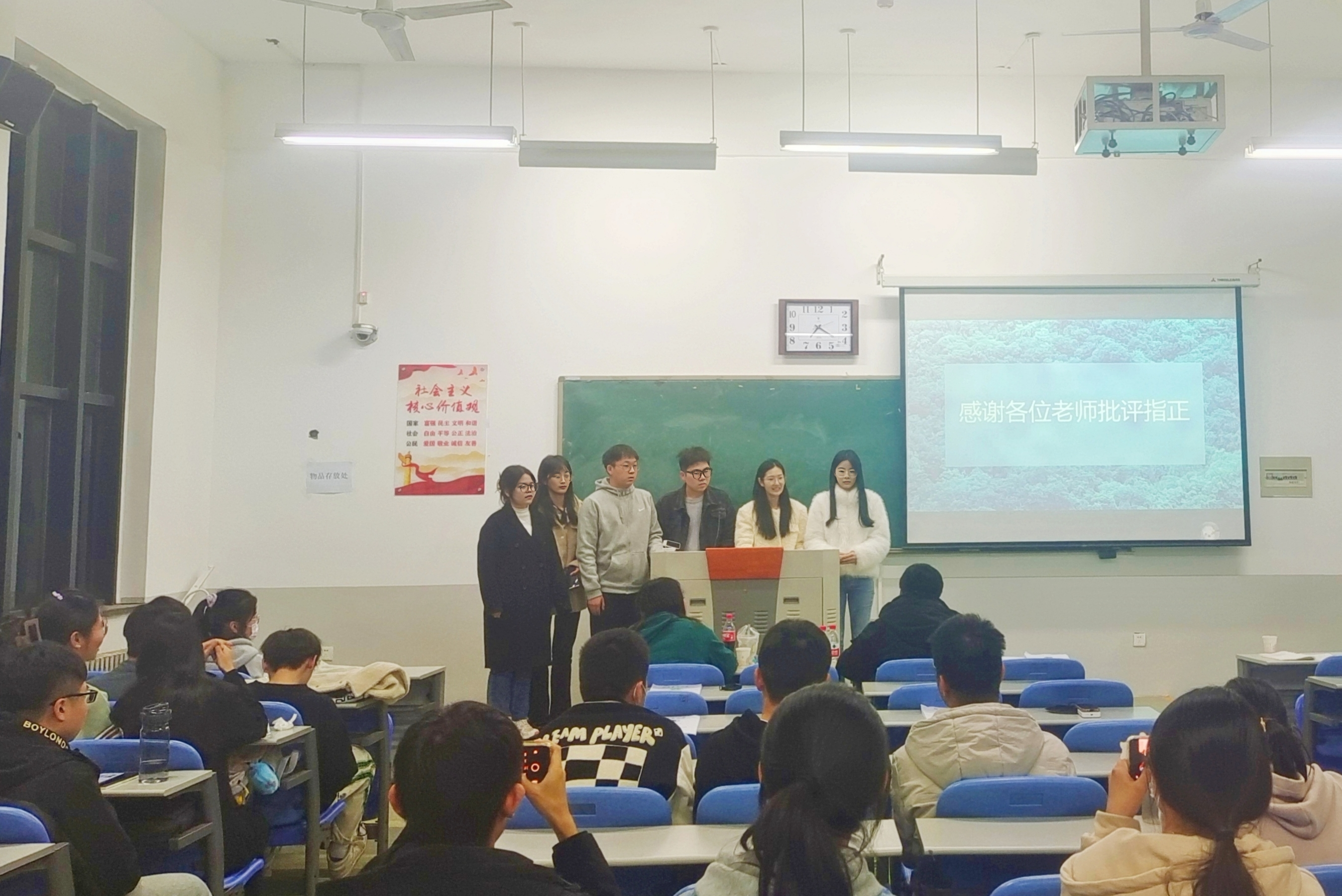 在答辩过程中,评委老师从项目的创新之处、技术性、可行性、所存在的问题等方面进行提问,答辩人紧扣老师的问题进行深入思考后详细回答。问答结束后,评委老师对答辩项目不足之处提出建议,参与答辩的同学虚心听取意见,受益匪浅。