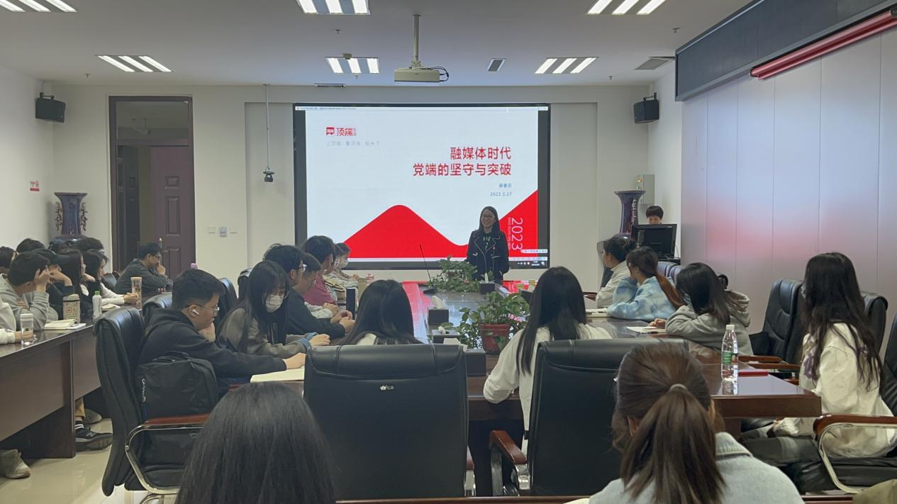 特邀顶端新闻记者薛素芬在A215开展《融媒体时代党端的坚守与突破》专题讲座。院团委老师、部分学生代表到场参加。