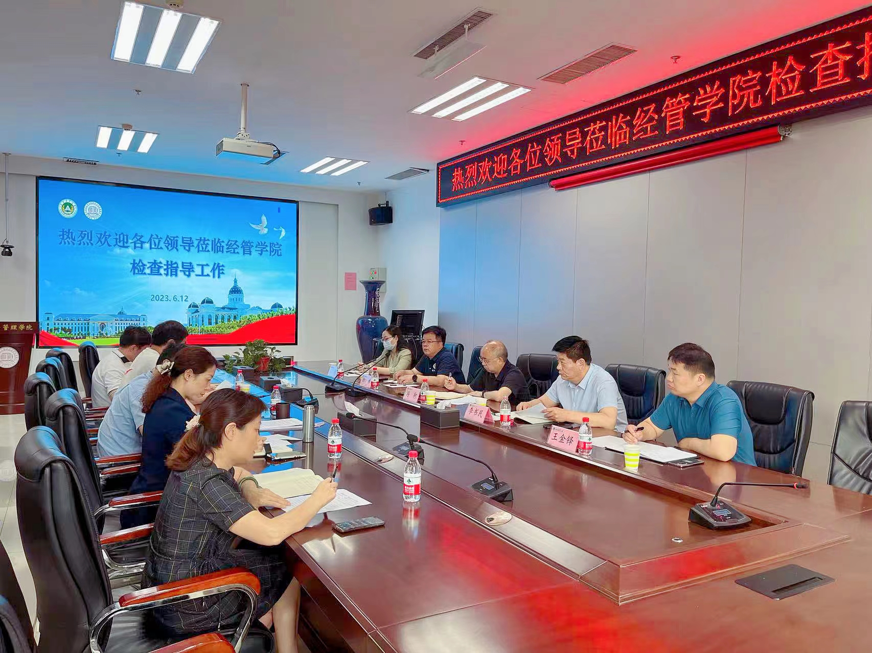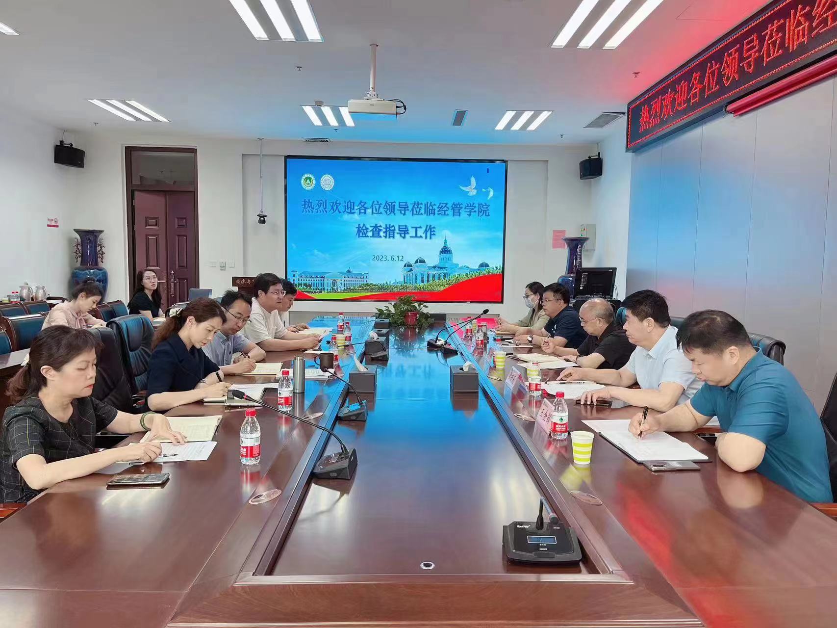 党委理论学习中心组集体学习会议在繁塔楼A215会议室举行,会议主题为“数字经济背景下经管类专业应如何开展专业建设”。学院全体领导班子成员参加。根据学校整体安排,校第二督查组成员游舸、李书民、徐峰、王金铎、王娟参与旁听,并检查指导近期主题教育及其他工作开展情况。会议由院党委书记王宏立主持。