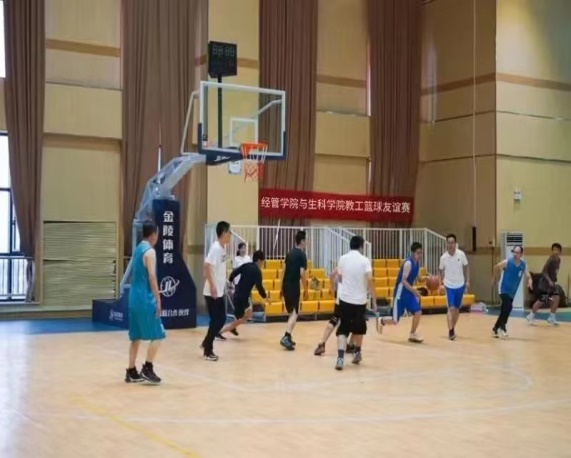 男教工组成的篮球队与生命学院男子篮球队开展了别开生面的友谊赛,老师们一改往日的严谨认真,各个化身为敏捷的“灌篮高手”。每每进入比赛状态,他们时而身体对抗,高举高打;时而区域联防,团结协作;时而运球突破,空切上篮......在你争我夺,你攻我守中展示着速度与力量,激情在球场上展现得淋漓尽致!