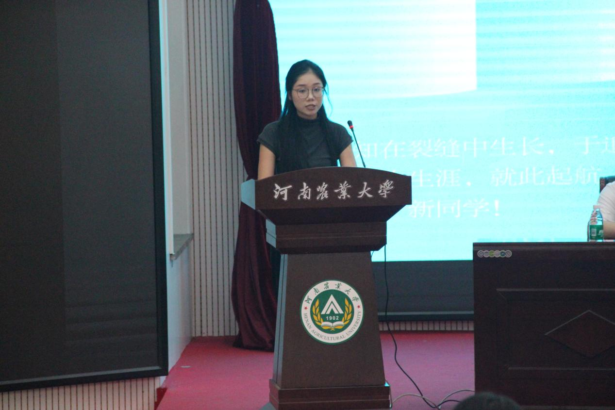 新生代表王雨乐表达了对研究生生活的期待,分享了选择经济与管理领域的初心,并代表新生承诺将以热情投入学习,尊重师长、团结同学,积极参与学术与实践,践行新时代研究生的使命与担当。