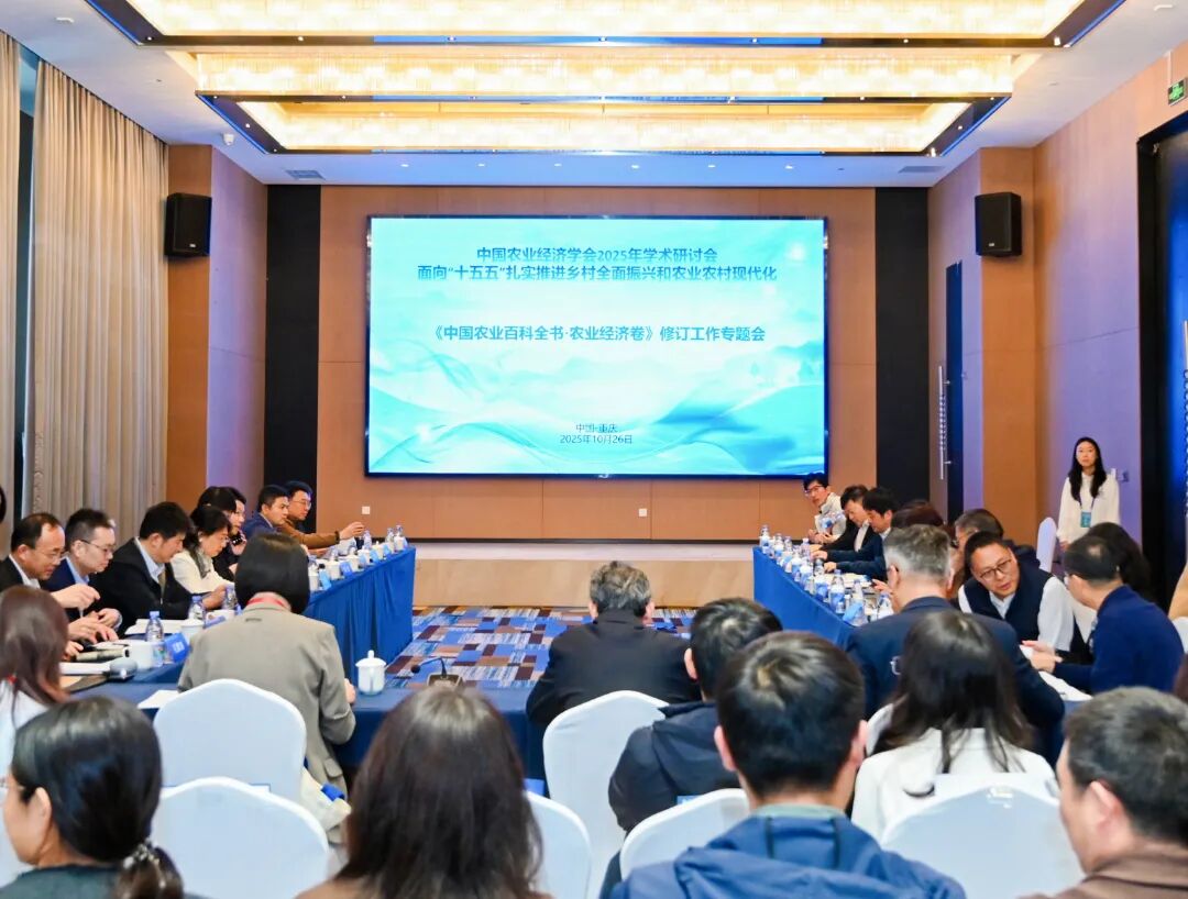 2025年10月26日,由农业农村部指导、中国农业经济学会牵头组织的《中国农业百科全书·农业经济卷》修订工作推进会在重庆召开。会议围绕全书框架设计、工作机制与编写规范等重要议题进行了深入研讨。来自全国农业经济领域的权威专家、出版社代表及各分支编写团队共同参会。
