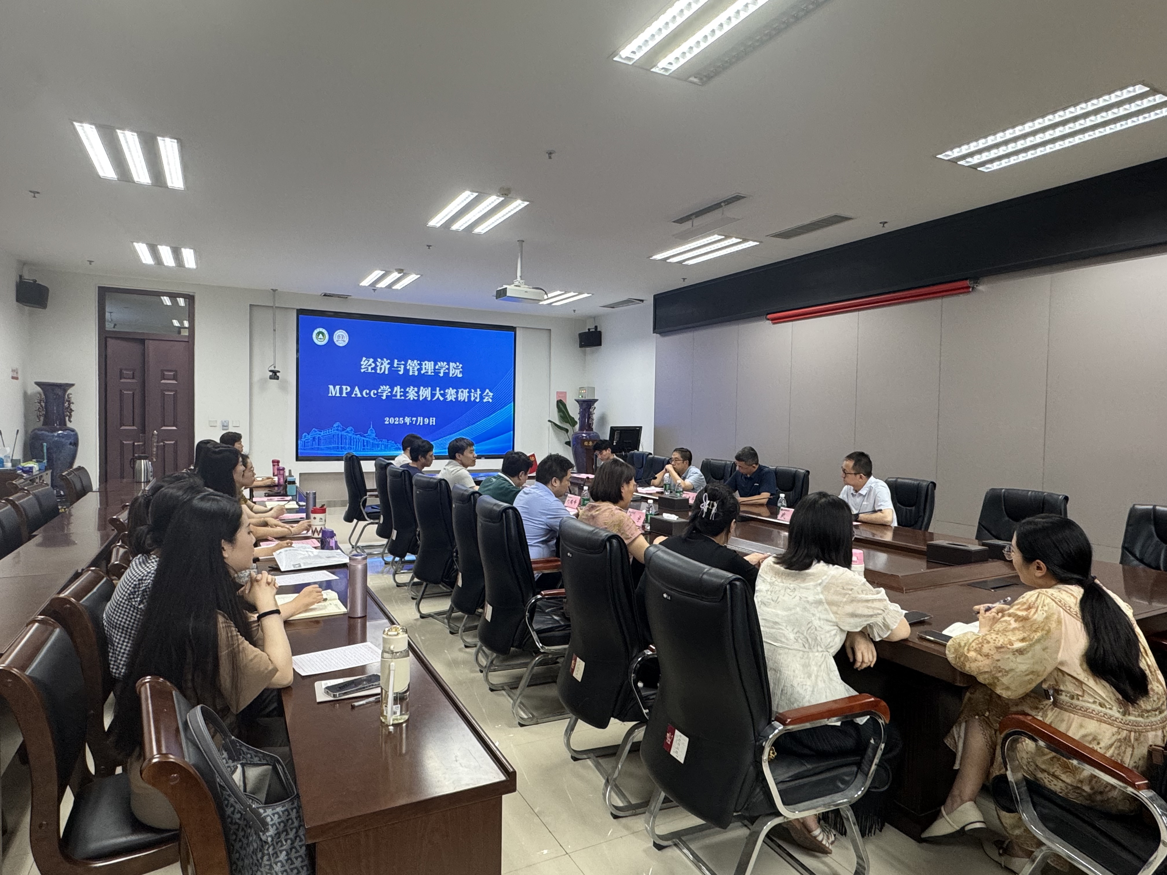 于繁塔楼A215会议室举办MPAcc学生案例大赛研讨会,会议特邀河南财经政法大学会计学院副院长叶建华教授做报告,校社科处处长何泽军、院长刘瑞峰、副院长宋宇出席本次会议,学院师生代表共同参与。