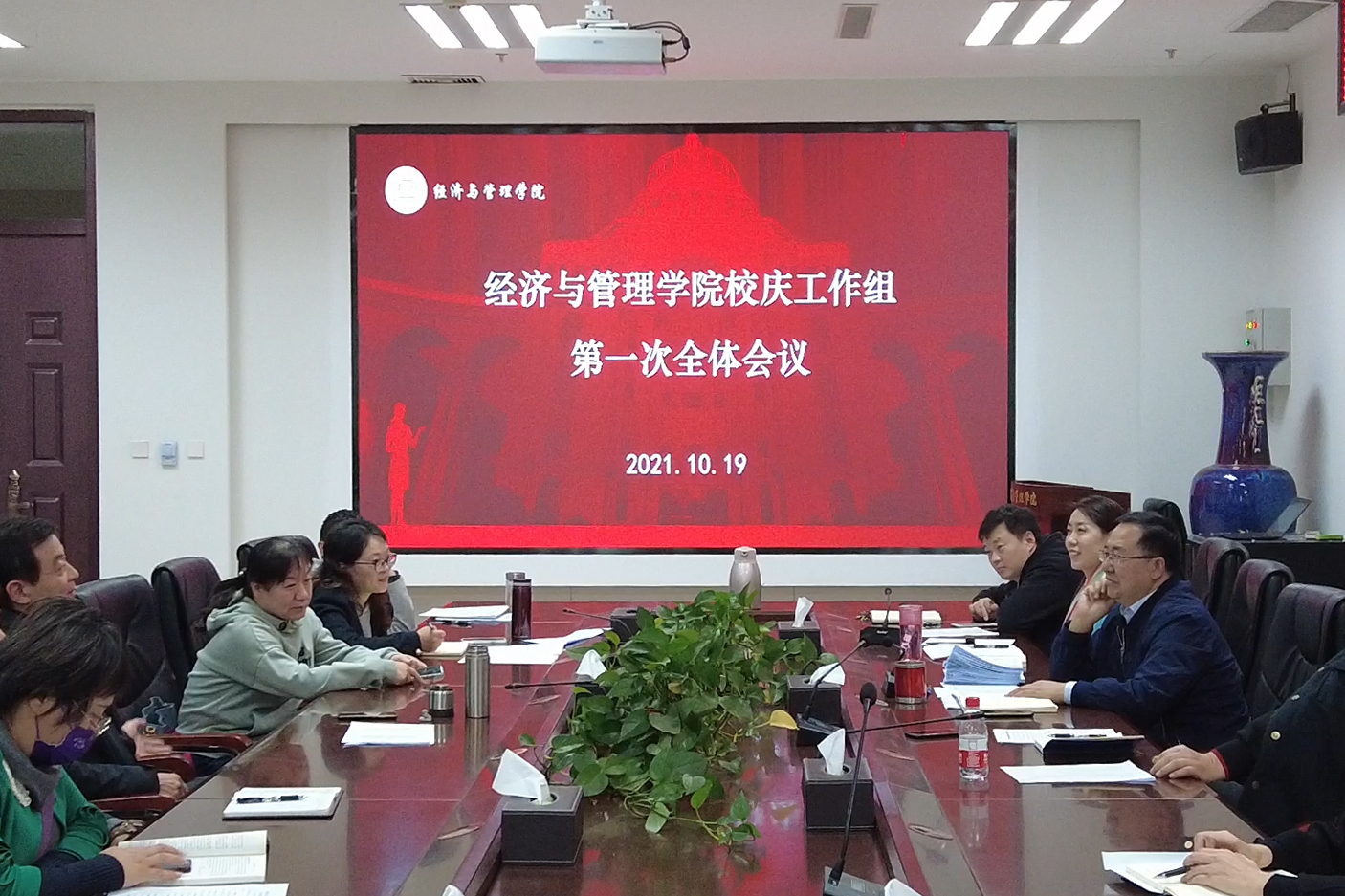 于教学楼A215召开120周年校庆准备工作讨论会。本次会议由院党委书记牛青杨、院长马恒运主持,副党委书记方芳、副院长赵翠萍、副院长赵友平、副院长刘瑞峰,各系室主任、全体团委老师及院党政办公室老师积极到场参加。