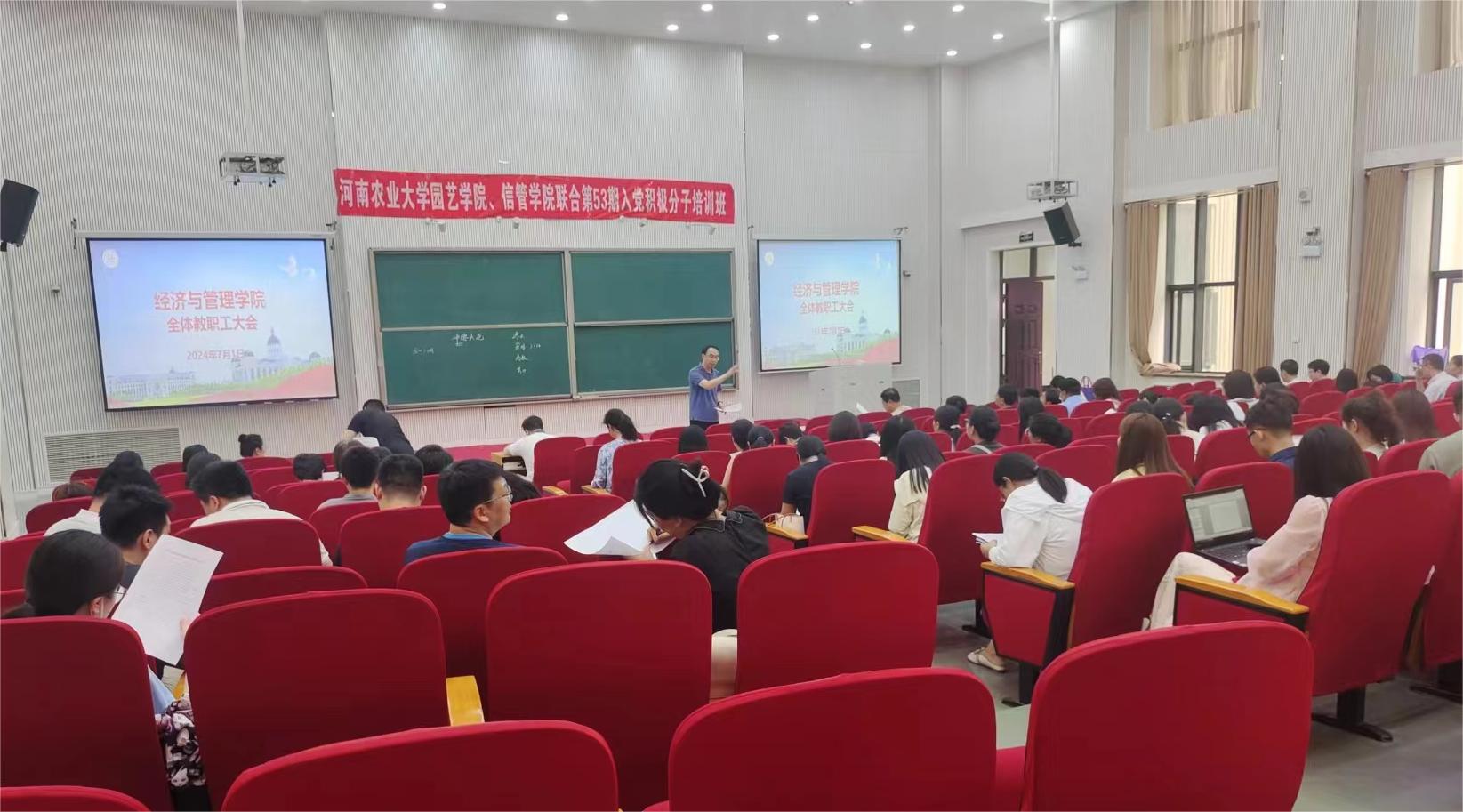 于龙子湖校区繁塔楼CD之间一层大教室5召开全体教职工大会。学院领导班子及全体教职工参加此次会议,会议由院党委书记王宏立主持。