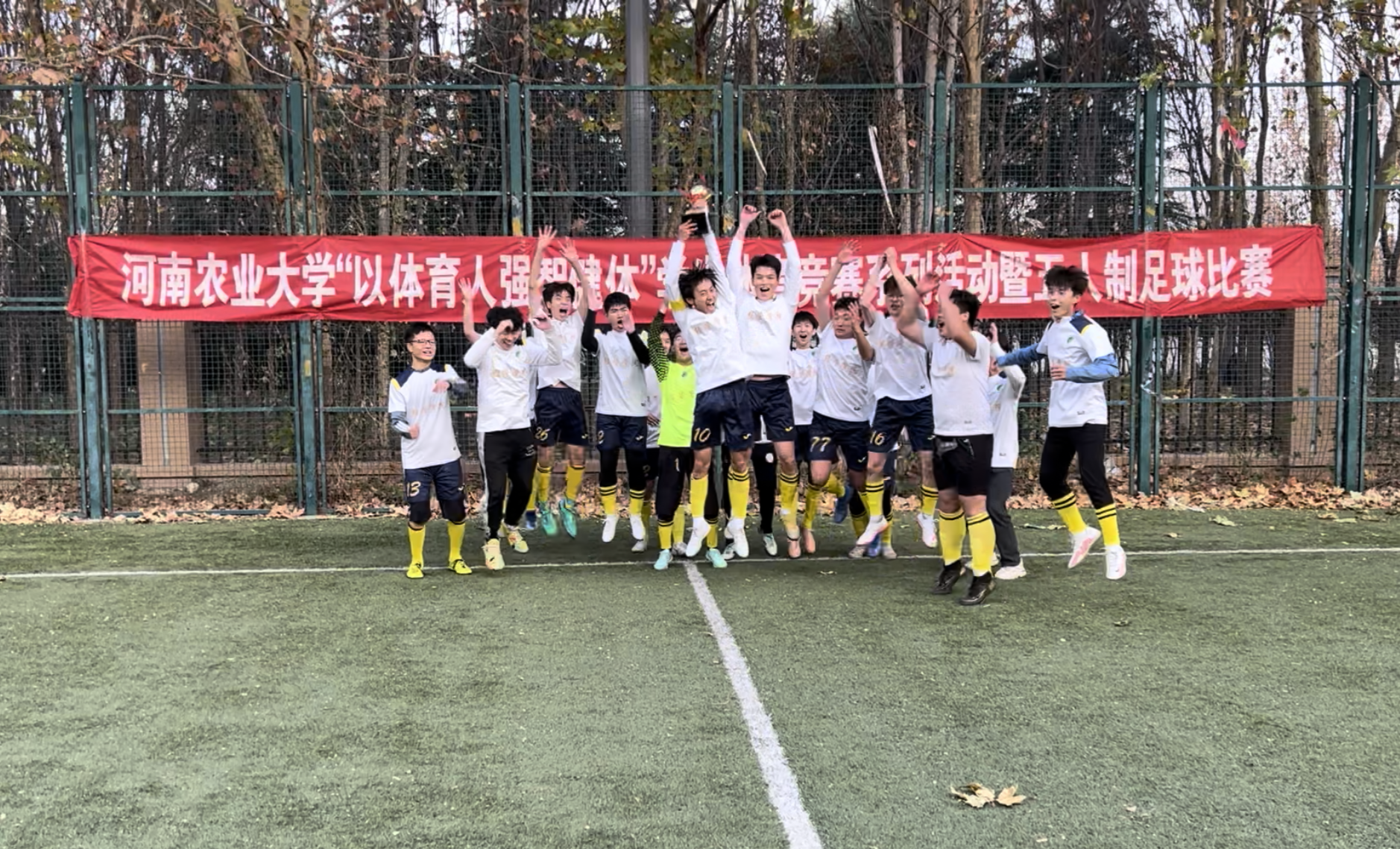 一哨赛起,一哨终局。我们圆满地同体院一起夺得冠军,这是值得铭刻的一瞬间,是我们人生中不可多得的闪光点。——边前卫 10号 赵豫恒