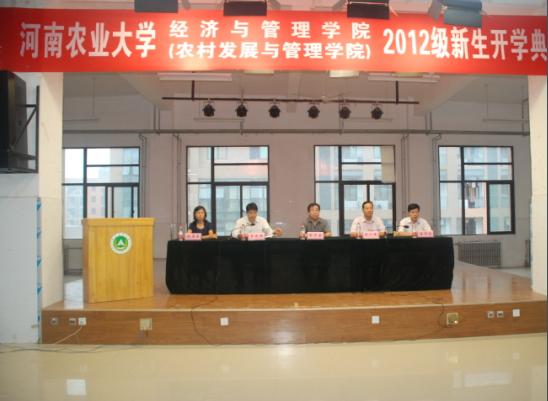 (农村发展与管理学院)2012级新生开学典礼在新校区餐厅三楼隆重举行。院党委书记张泽星、院长吴一平、副书记李建群、副院长唐华仓、赵翠萍,团委老师、各班班主任、助班及全体新生参加了会议。会议由副书记李建群主持。